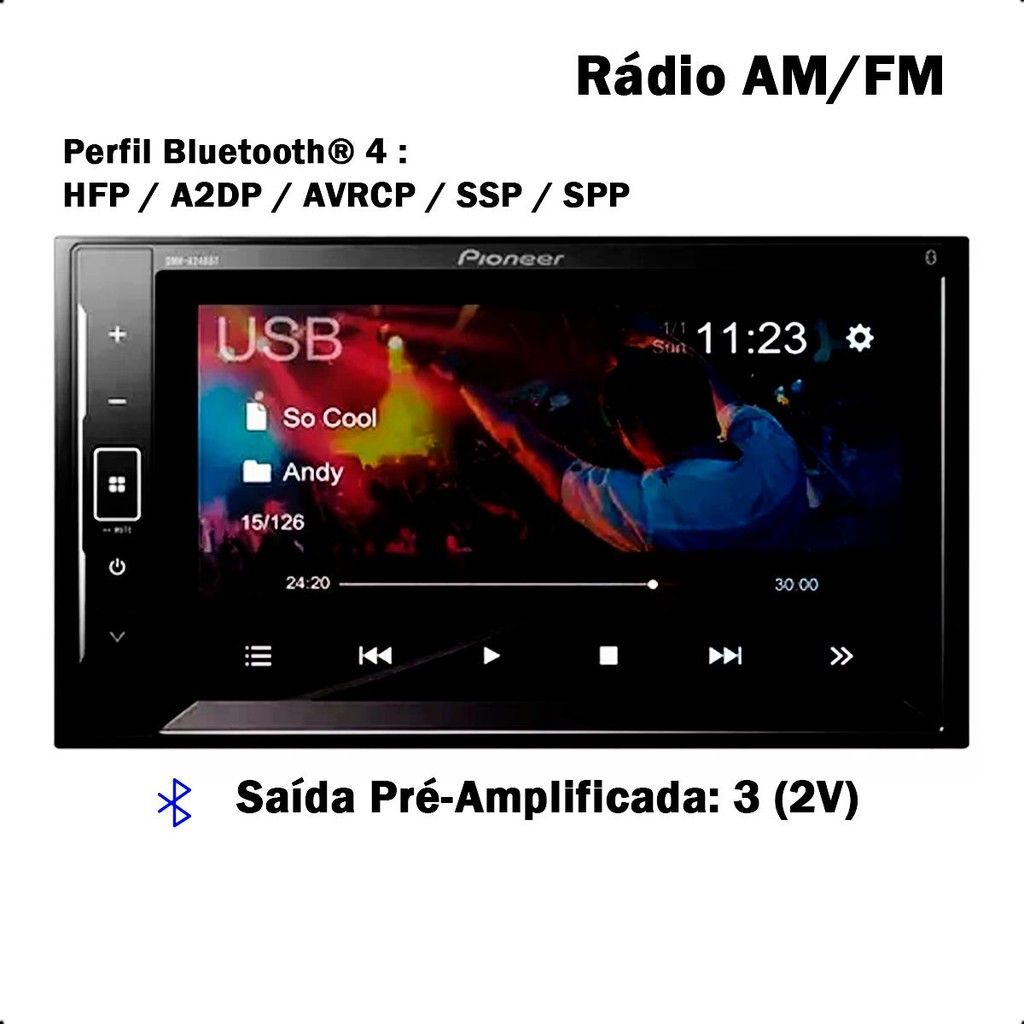Central Multimídia Pioneer DMH-A248BT 6.2 " Touch Screen