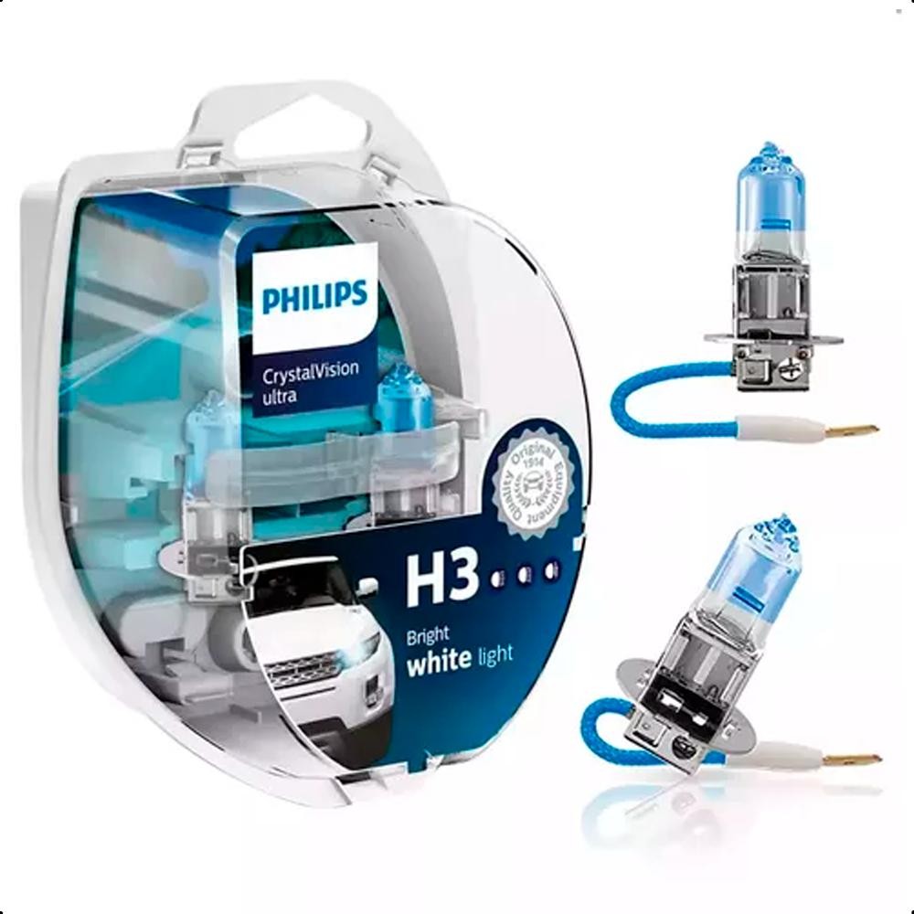 Par Lâmpada H3 Super Branca Philips Crystal Vision Ultra