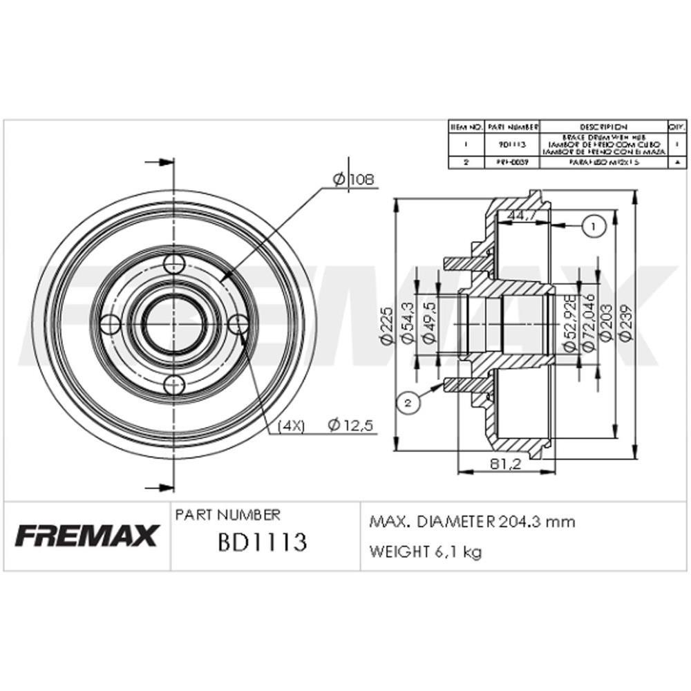 Tambor De Freio Traseiro - Fremax - BD1113