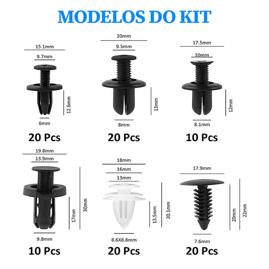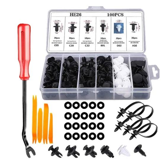 Kit 650/130/100 Peças Presilha Grampo Fixadores Revestimento Interno Externo Kit Espátula Com Chave Automotivo