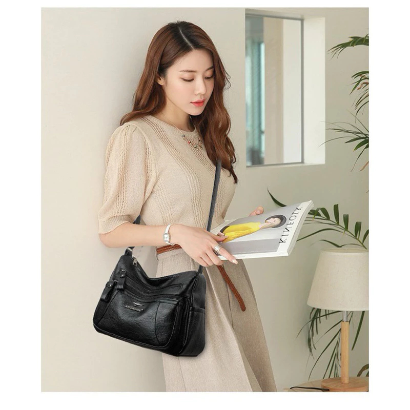 Nova bolsa de lazer versátil de couro macio e grande capacidade bolsa de ombro bolsa mensageiro