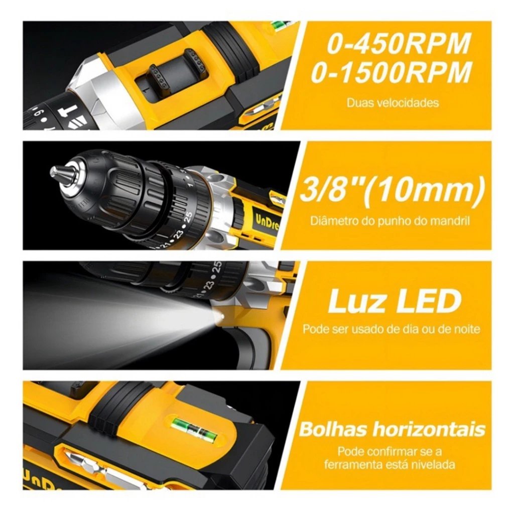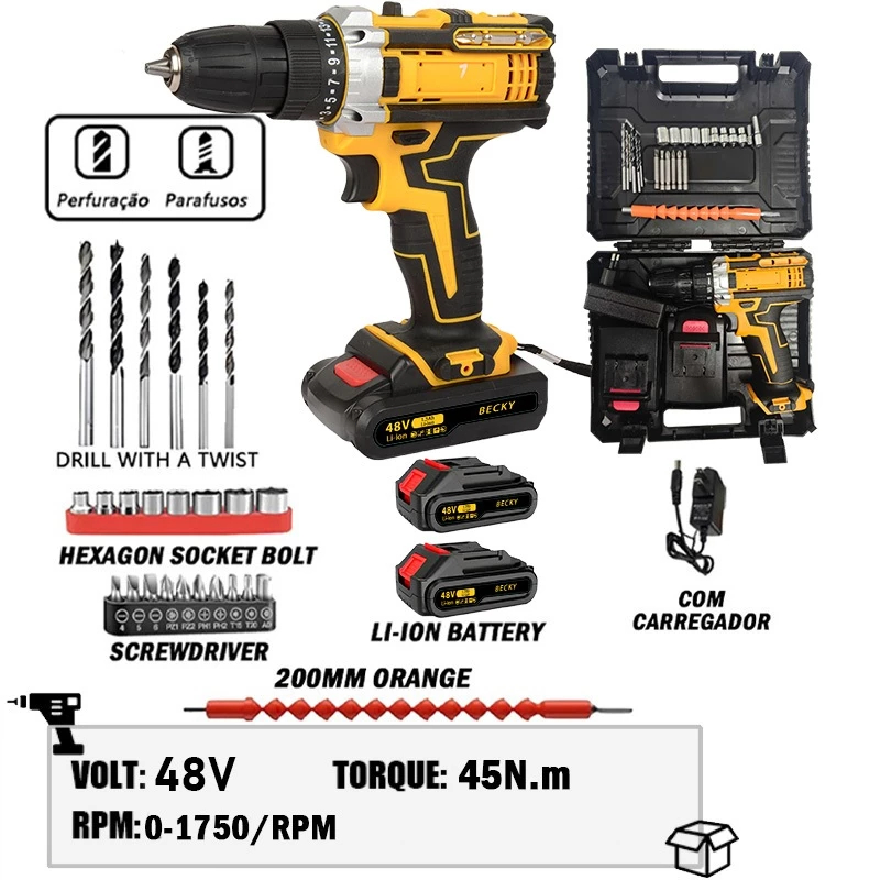 Kit Parafusadeira Furadeira 48V 2 Baterias Maleta e Acessórios Completos