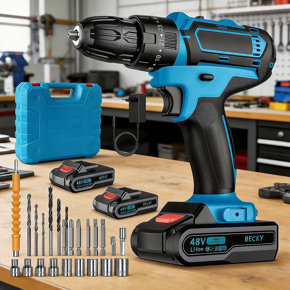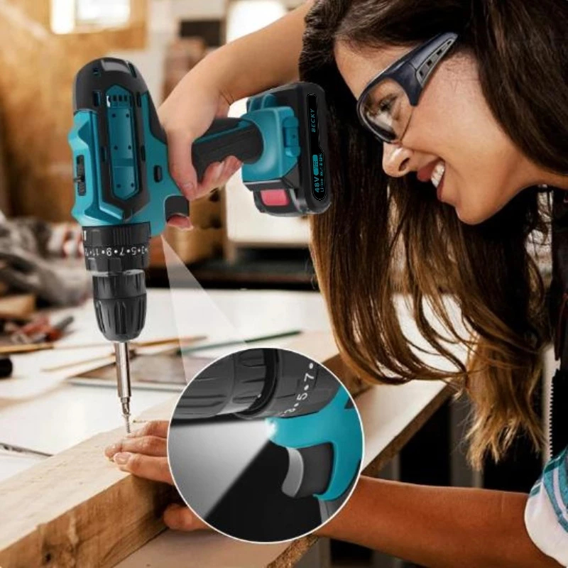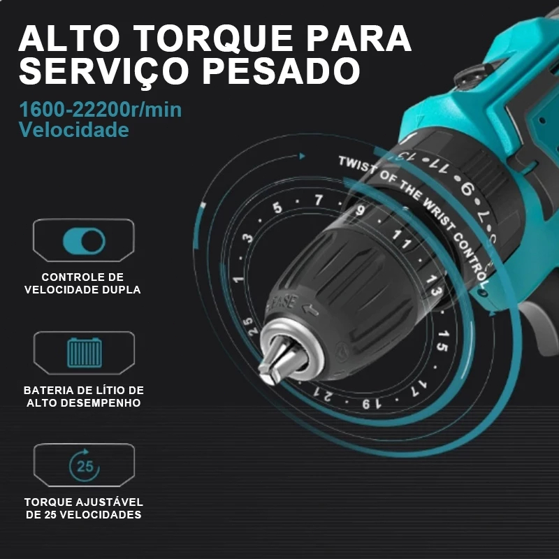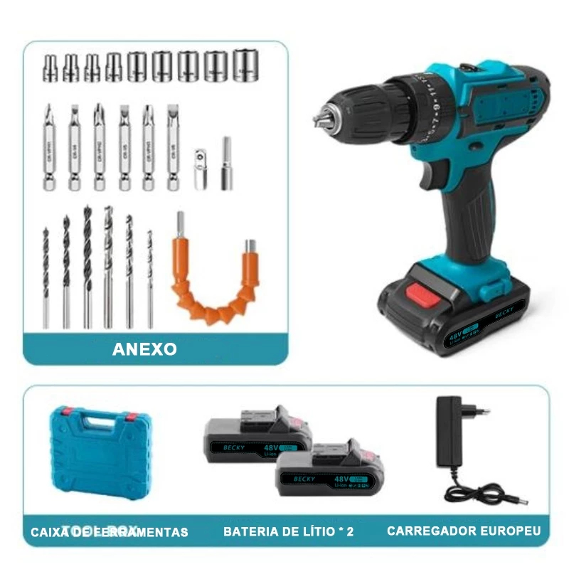 48V Parafusadeira Furadeira Elétrica 2 Baterias Maleta e Acessórios Completo Kit