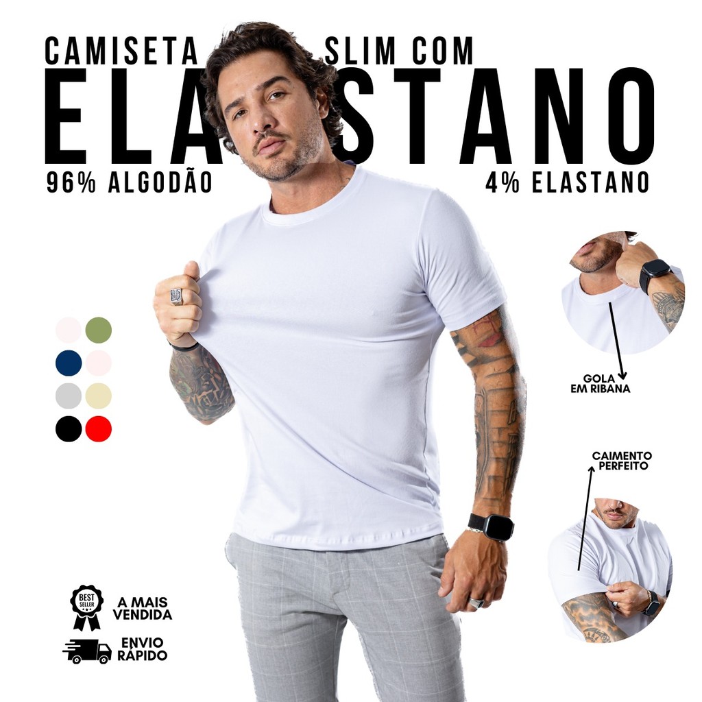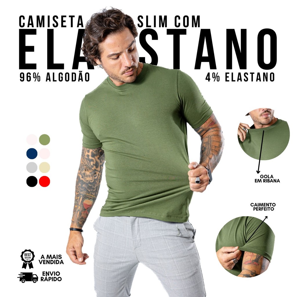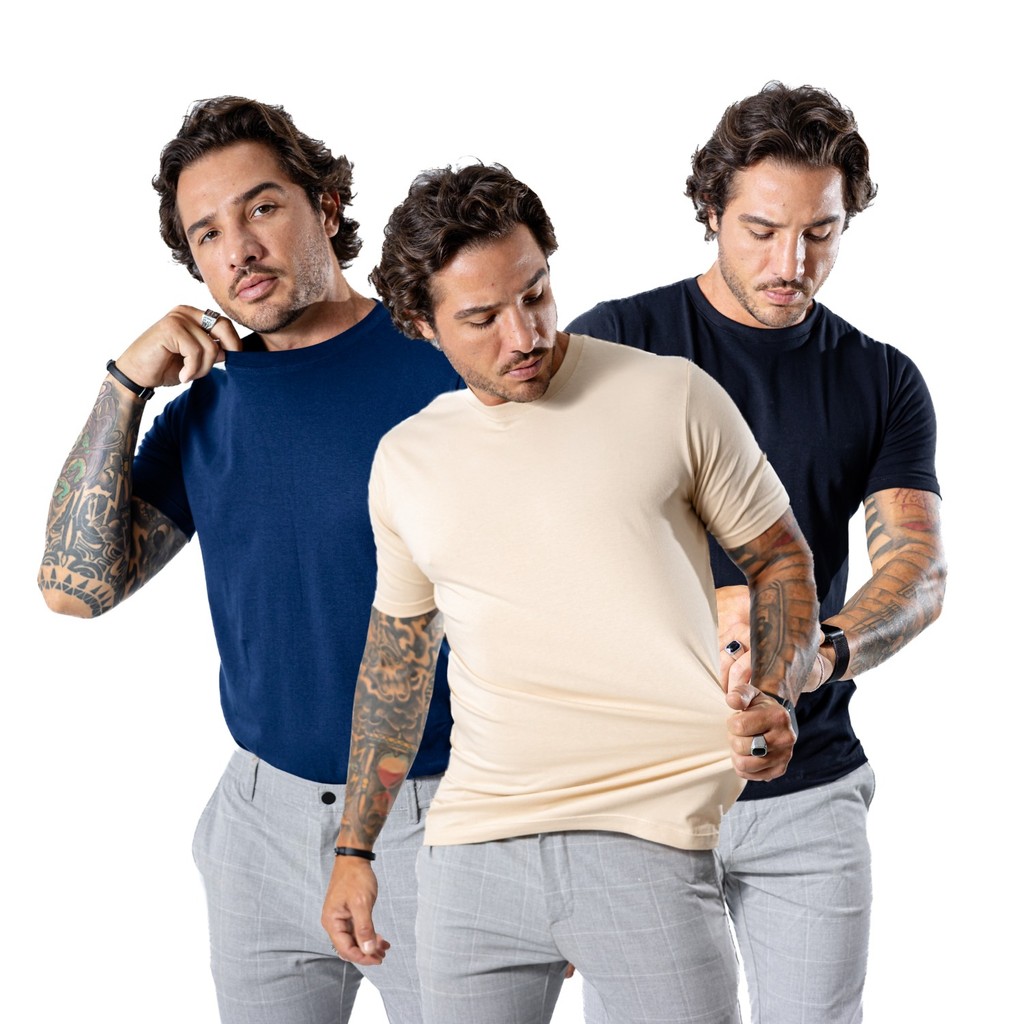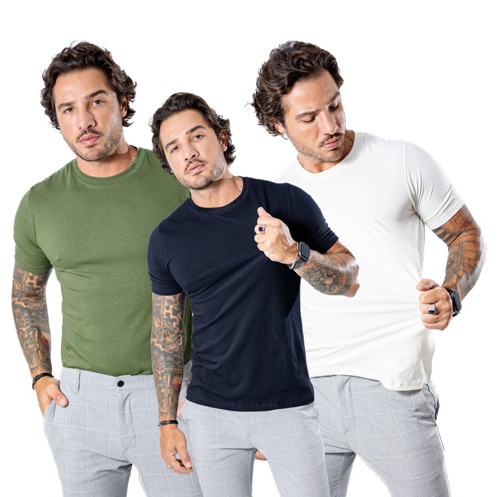Kit 3 Camiseta Peruana Masculina Premium Algodão Pima com Elastano para Homens Preto