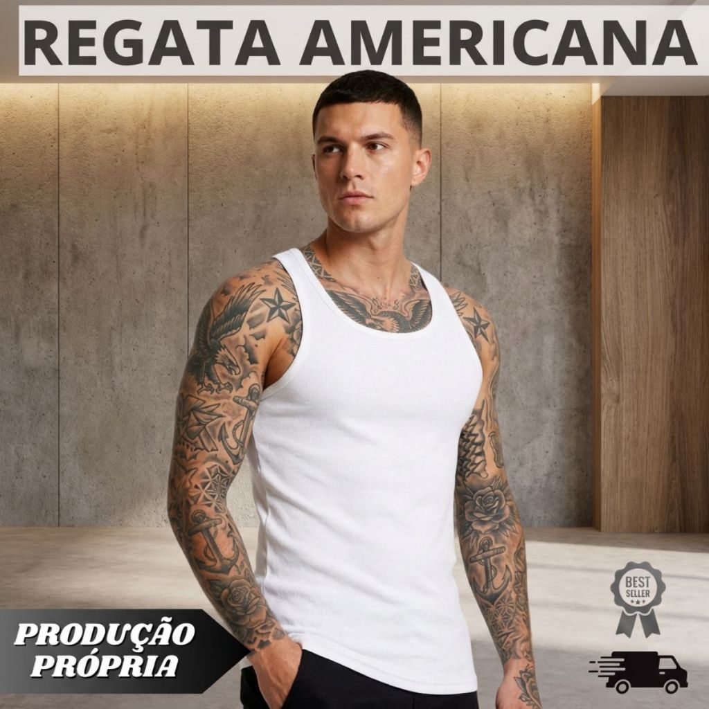 Regata Masculina Americana Ribana Algodão Elastano Blusa Slim Fit Academia Fitness Treino