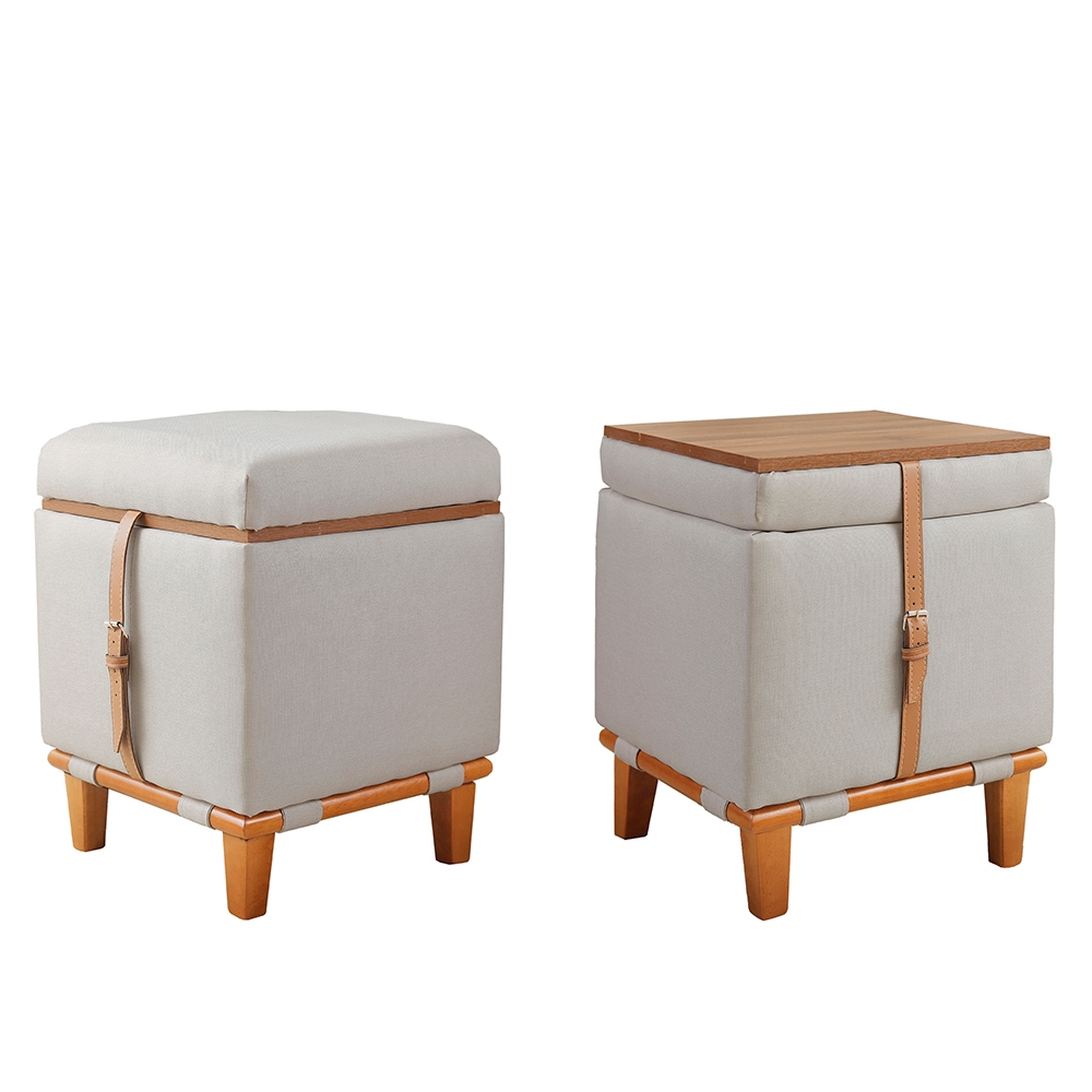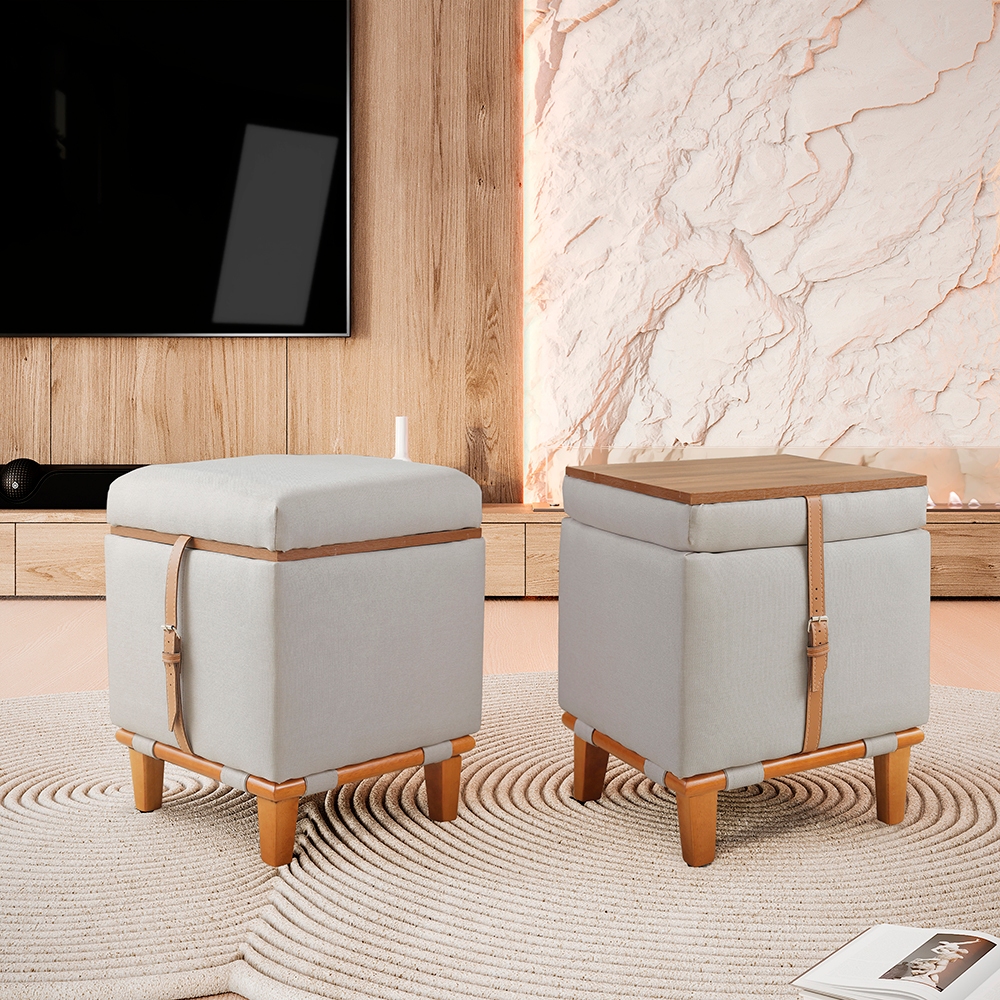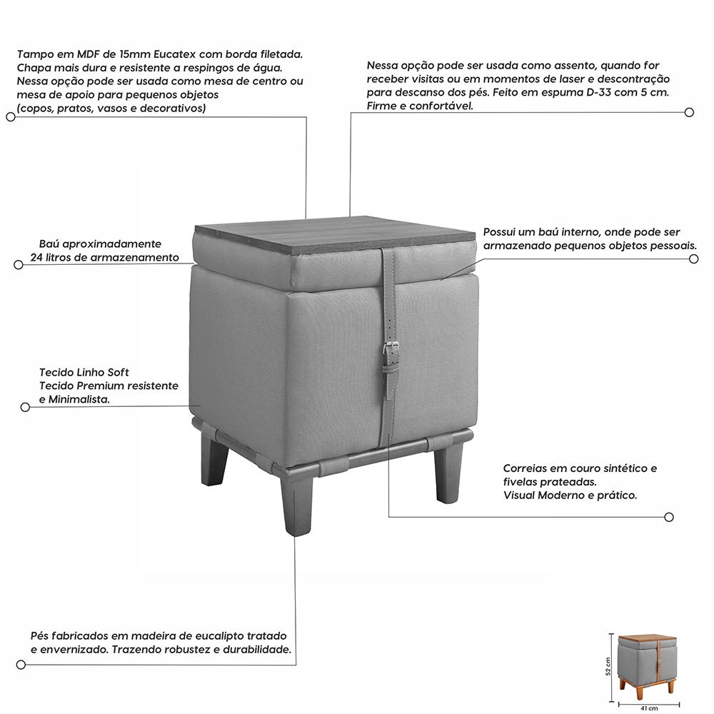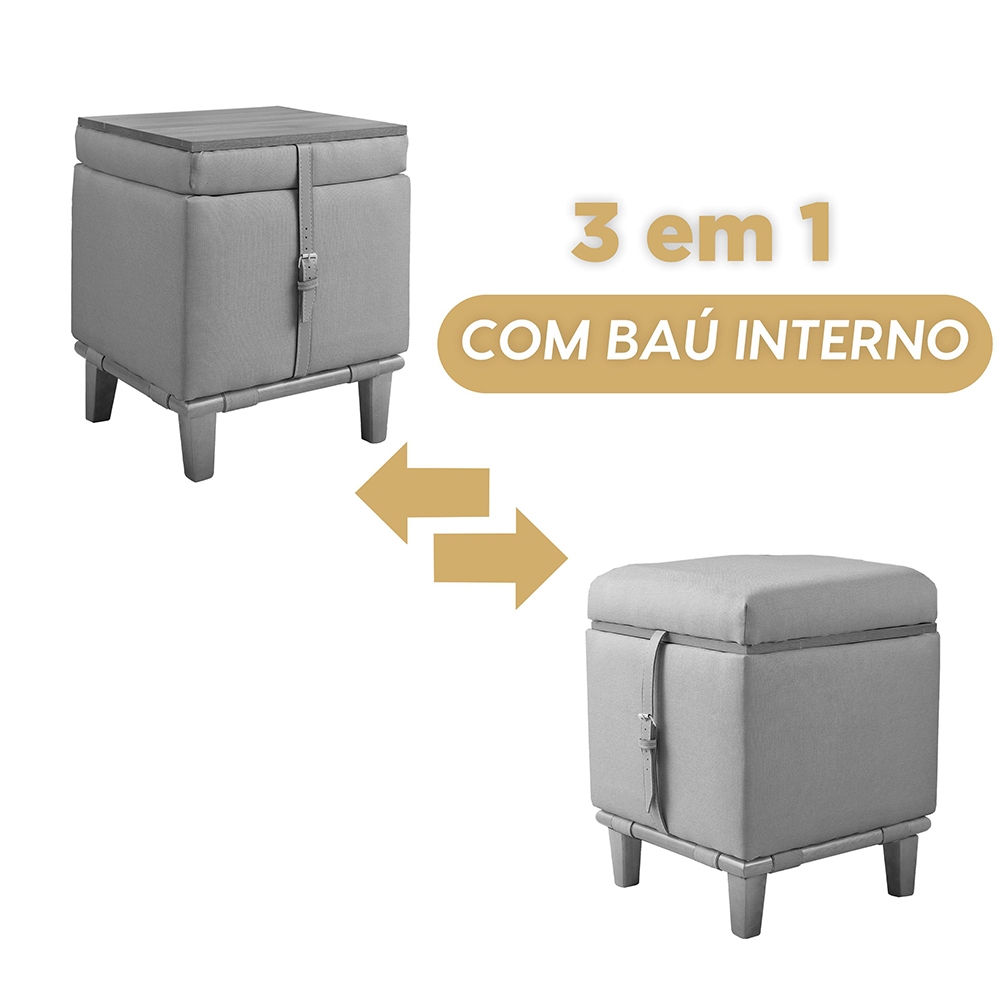 Puff Decorativo Multifunção Quadrado Baú Mesa 3 Em 1 Linho Organizador Banco Premium
