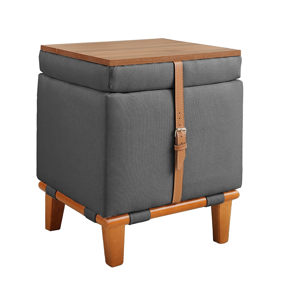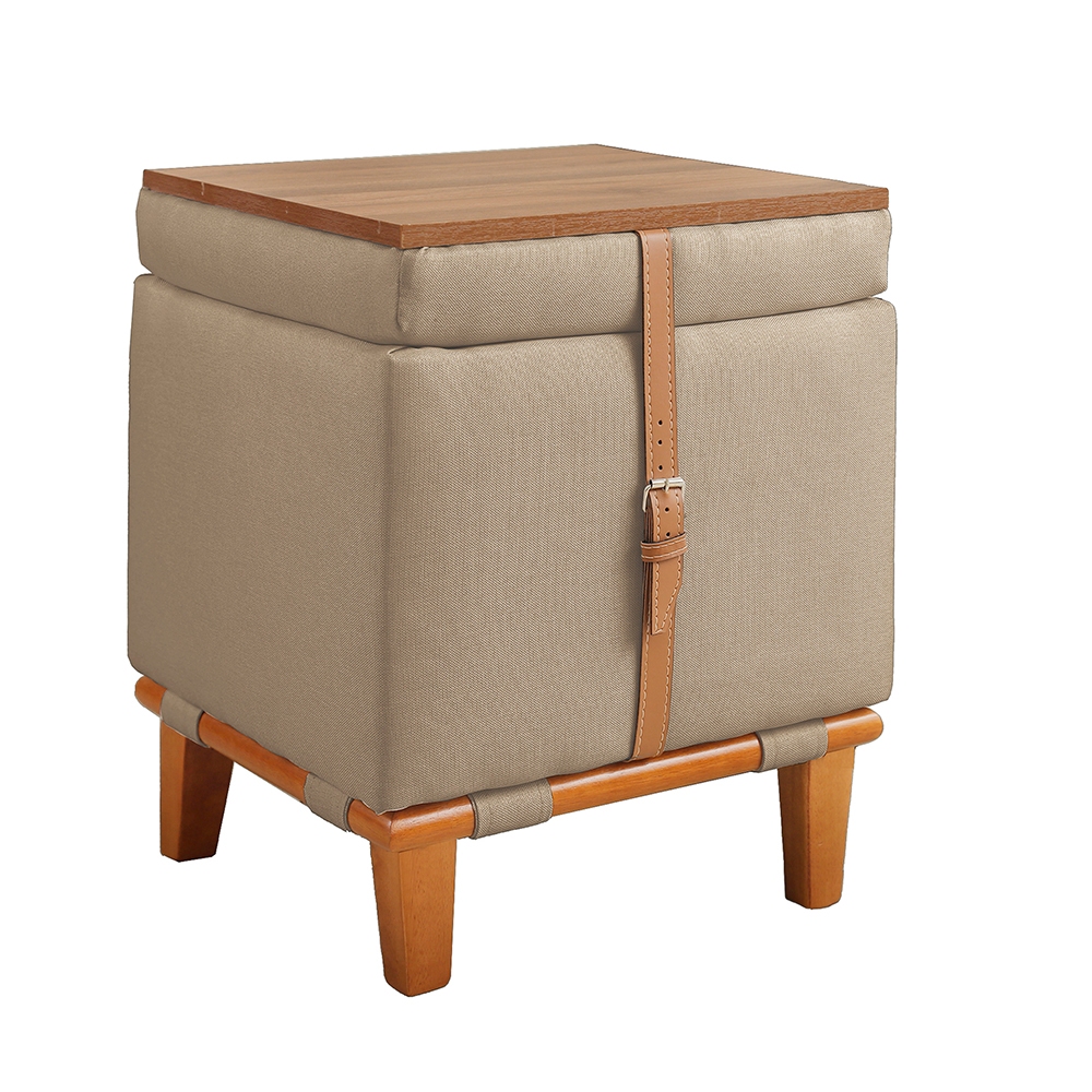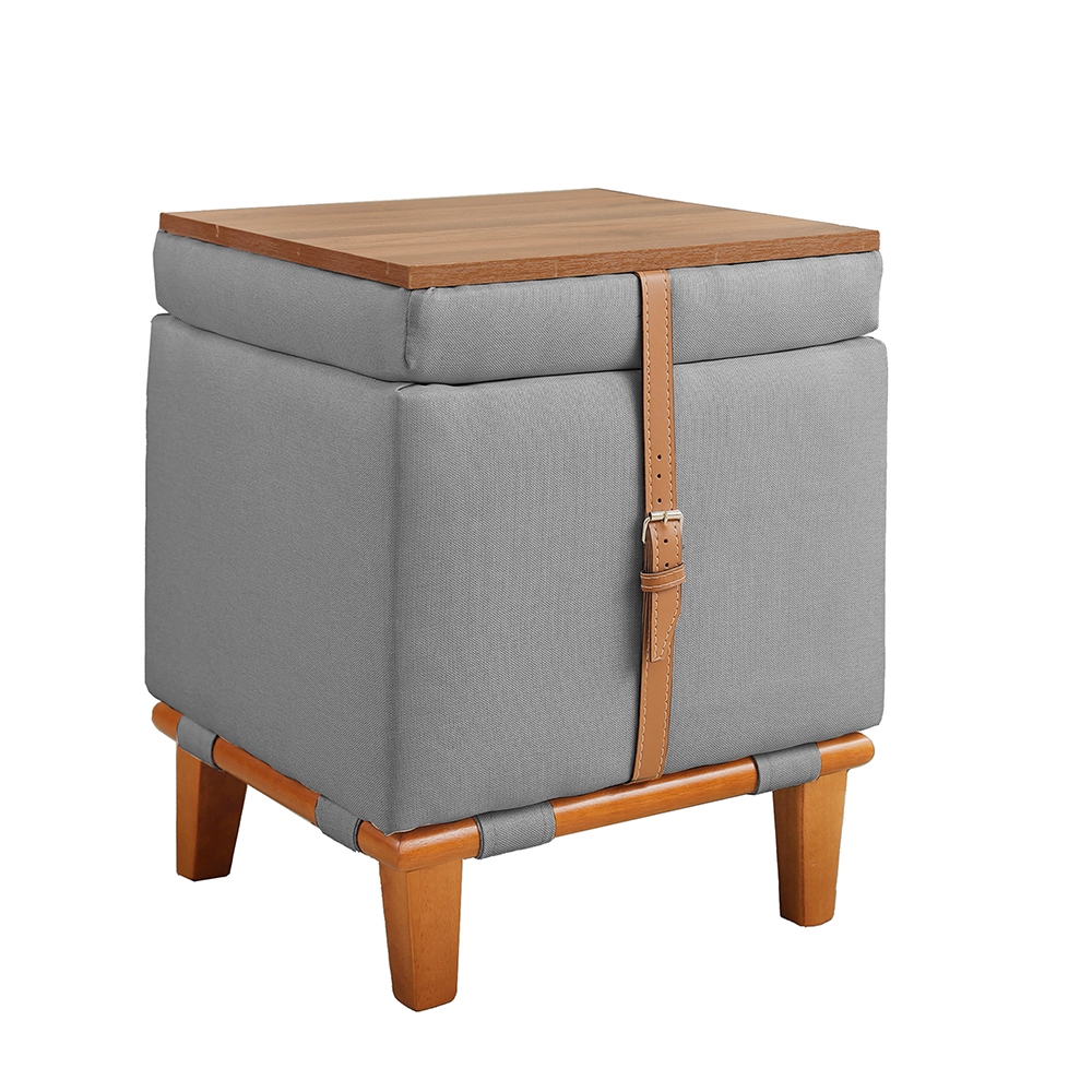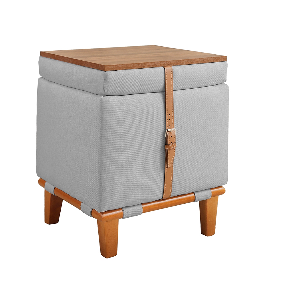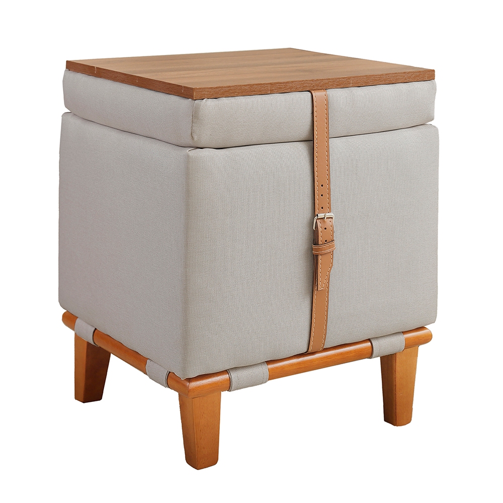 Puff Decorativo Multifunção Quadrado Baú Mesa 3 Em 1 Linho Organizador Banco Premium