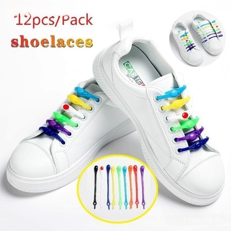 12pçs/Conjunto Preguiçoso Sem Gravata Elástico De Silicone Cadarços De Sapatos Para Tênis De Corrida Botas