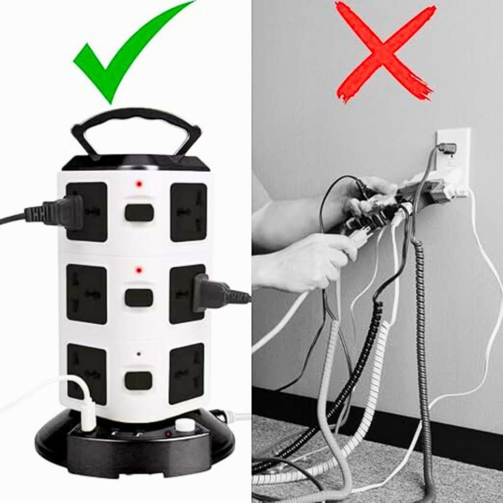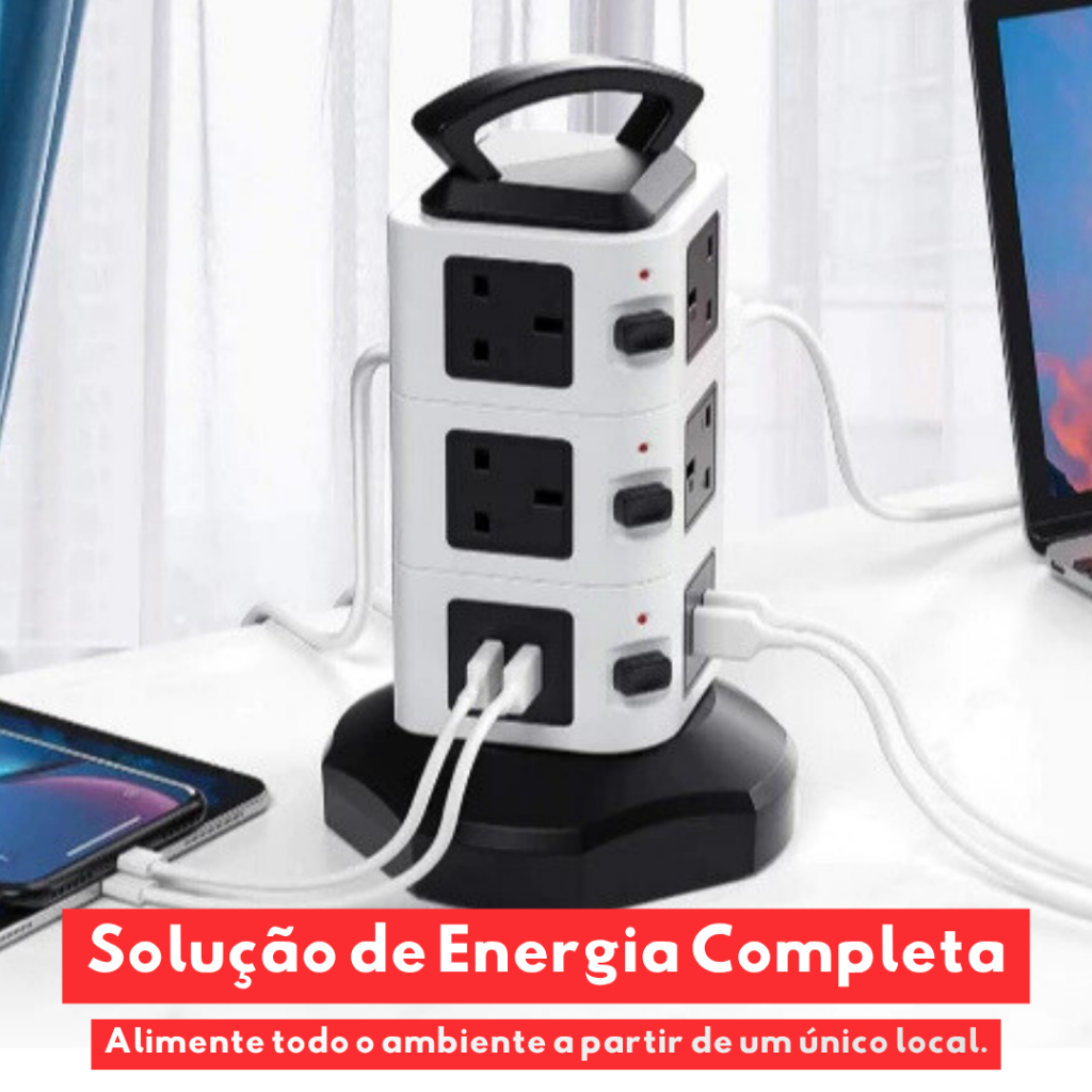 Torre 3 ANDARES - Tomadas Elétrica com 12 Entradas Universais + 2 Portas USB + 1 Porta Tipo C Bivolt