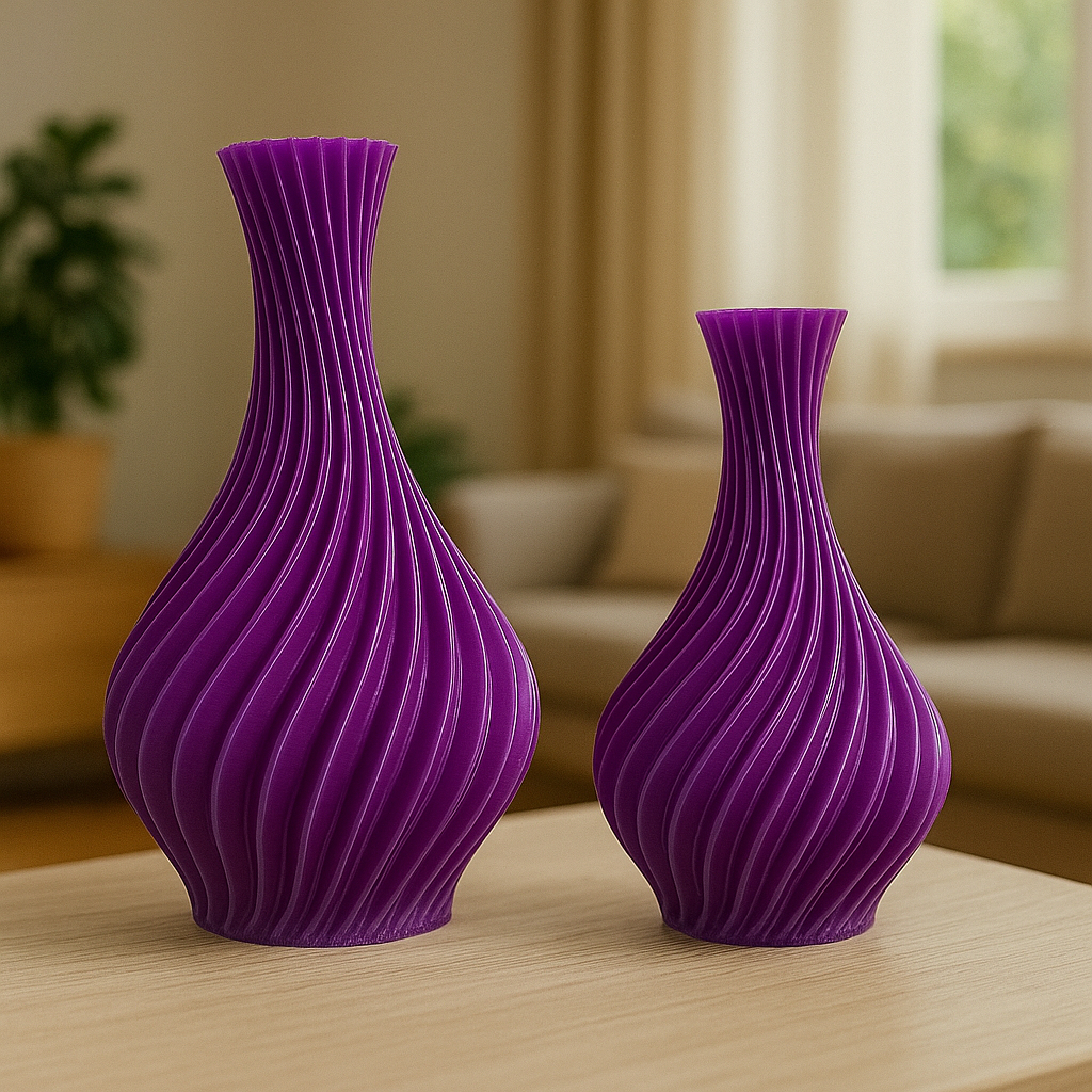 Par de Vasos Decorativos em Impressão 3D – Design Moderno Espiral para Casa ou Escritório