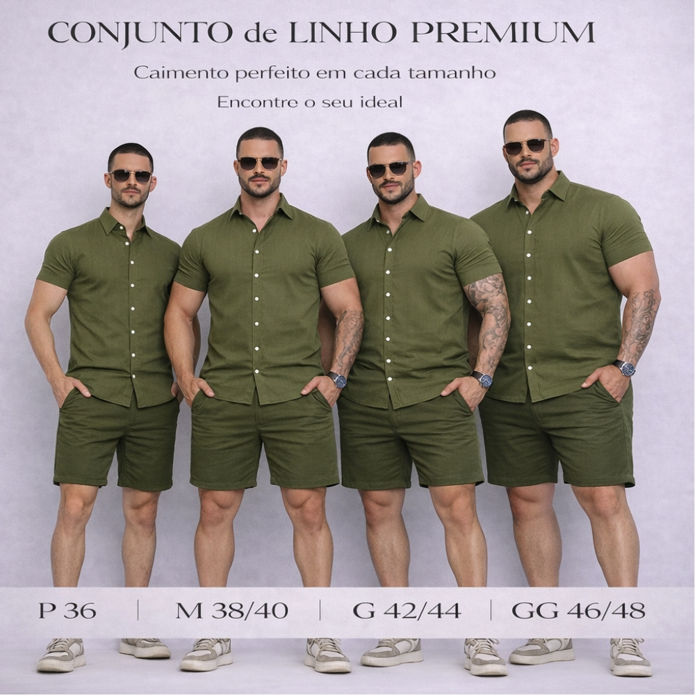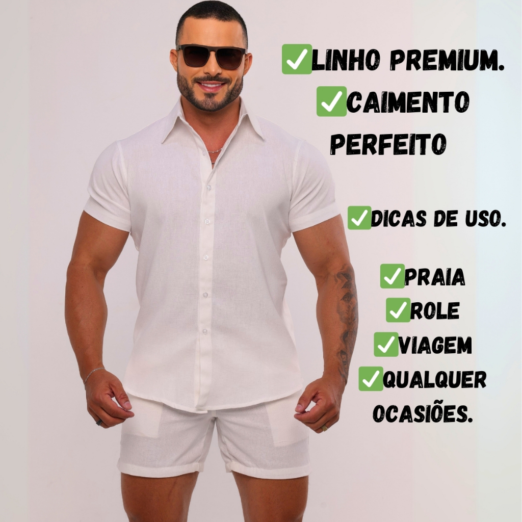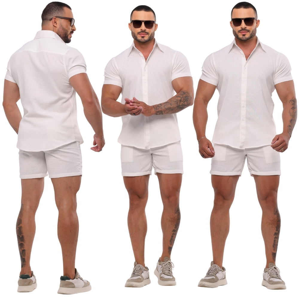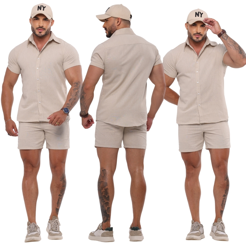 Conjunto Masculino Linho Camisa Shorts Mauricinho Premium Com Bolso