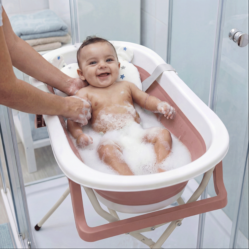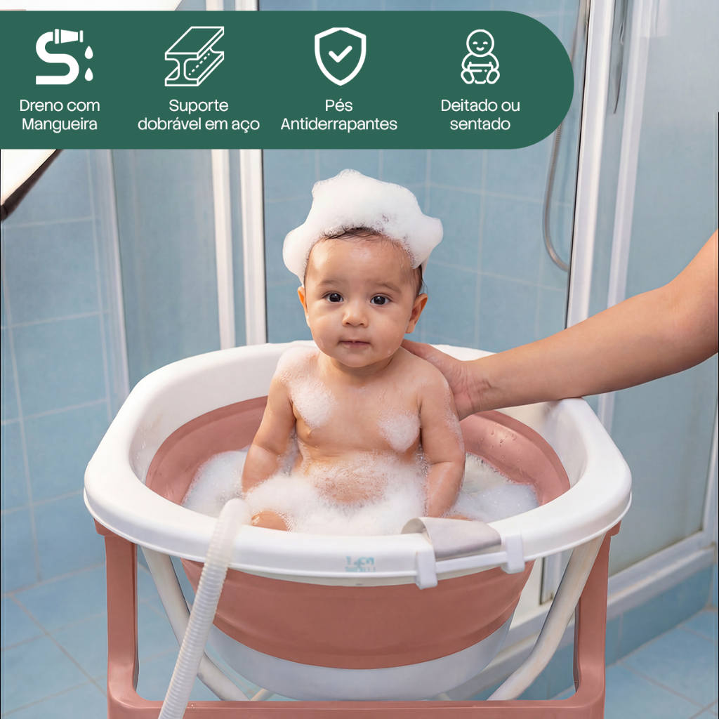 Banheira Para Bebês Dobrável Com Suporte 35l Até 16kg