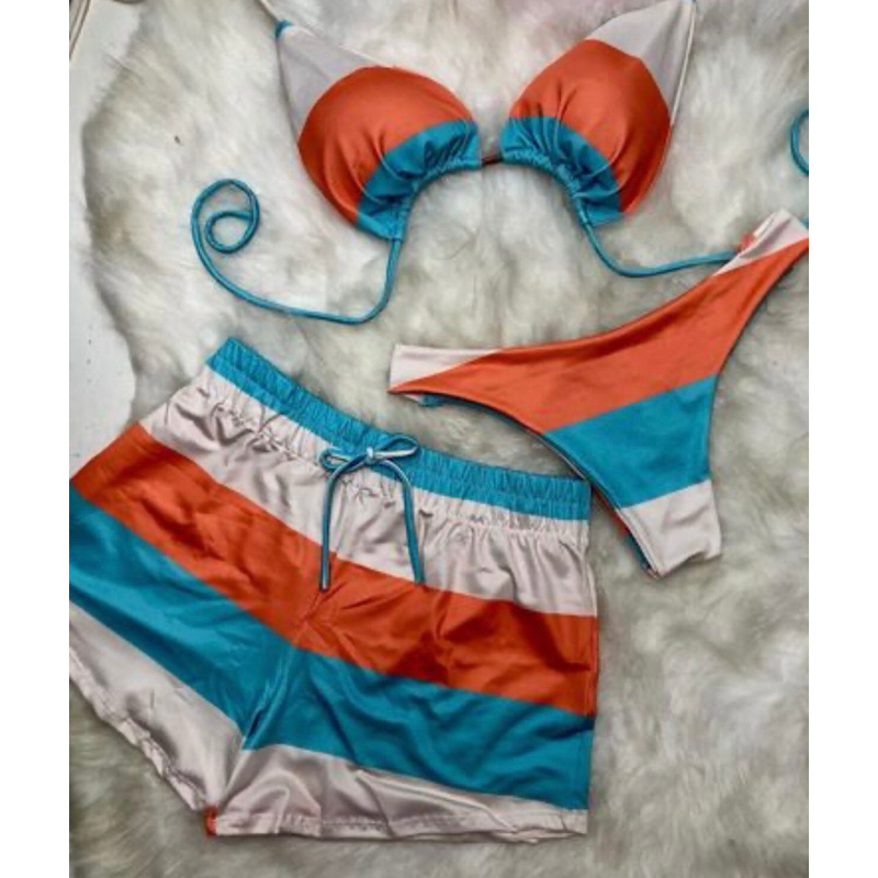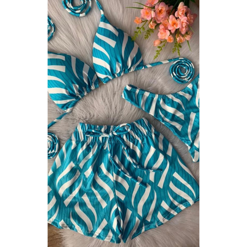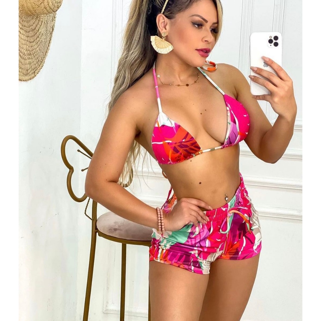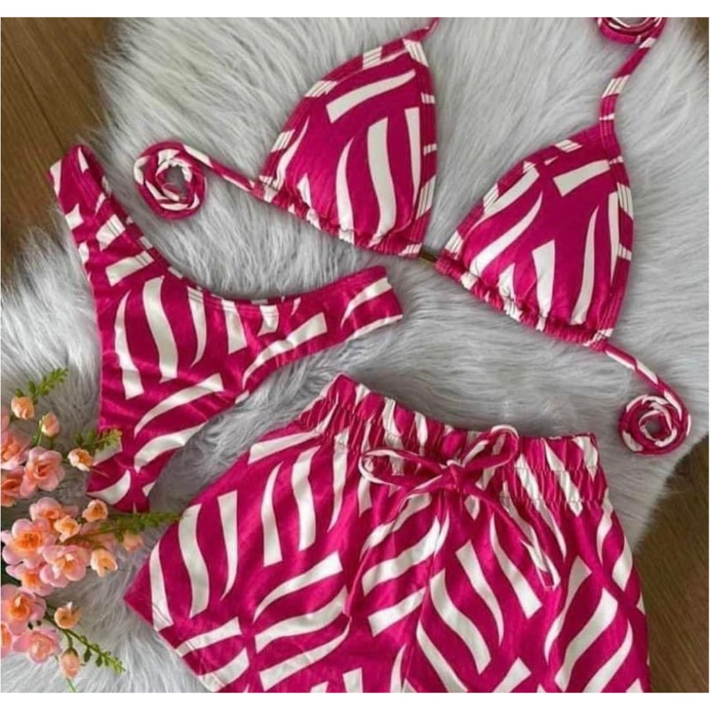 Conjunto trikini biquini Estampado saida shorts feminino Lançamento