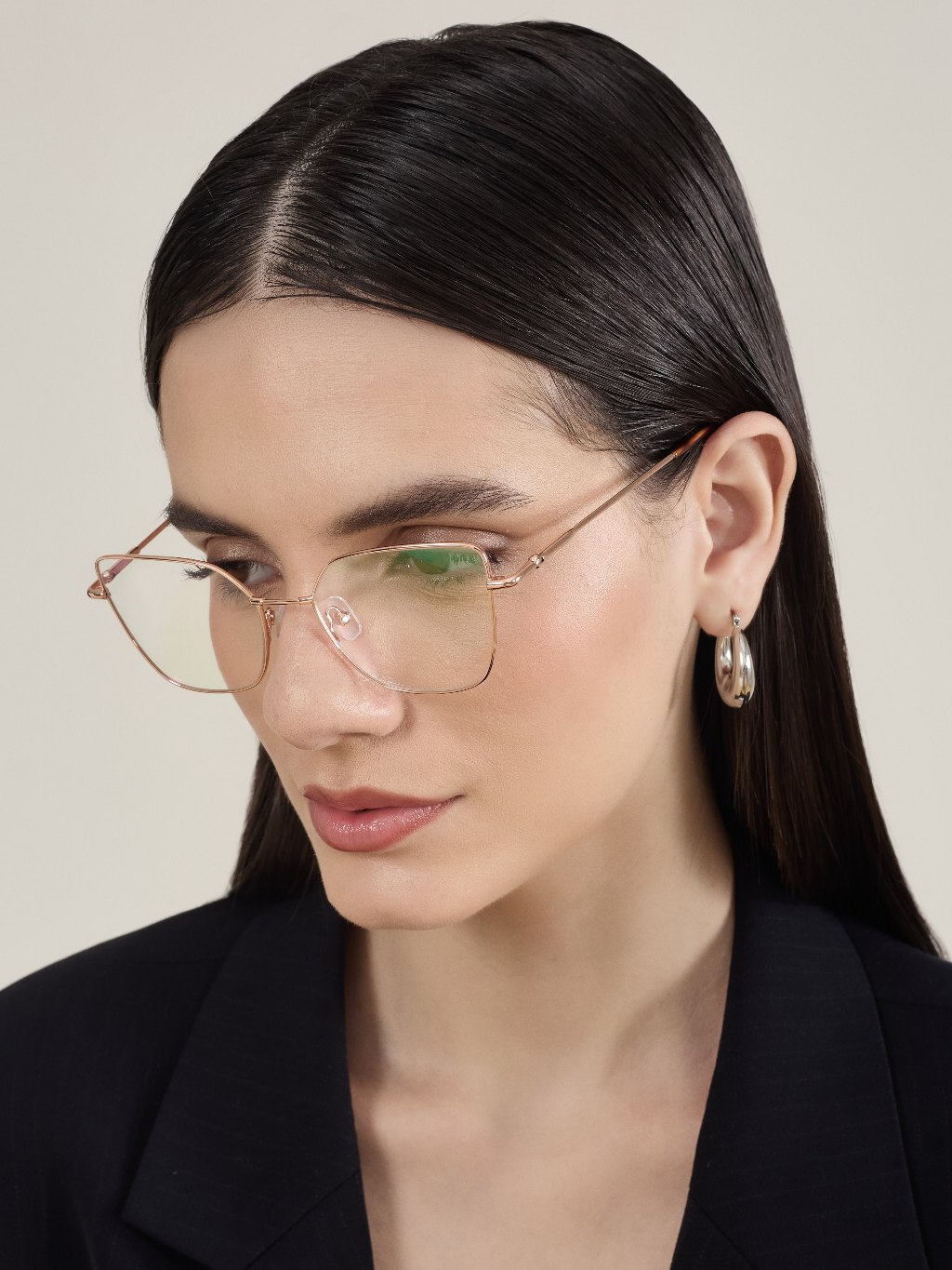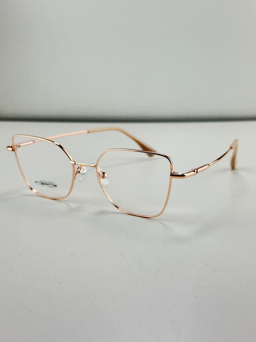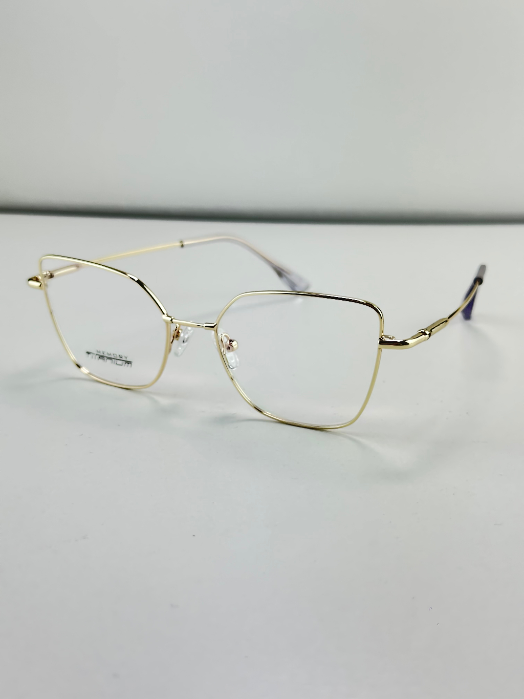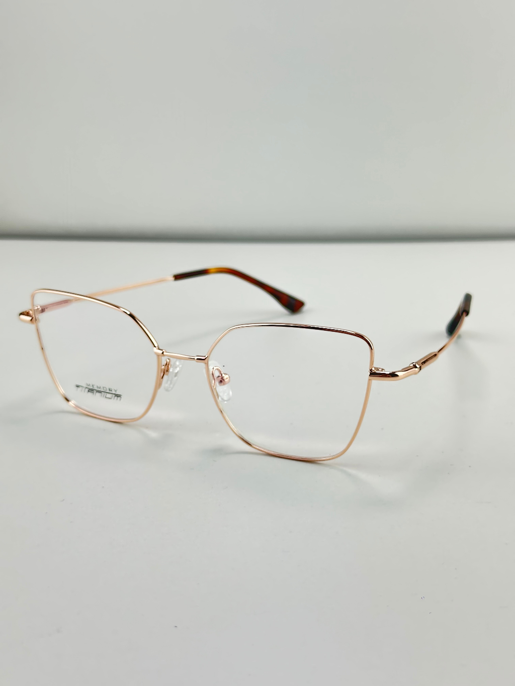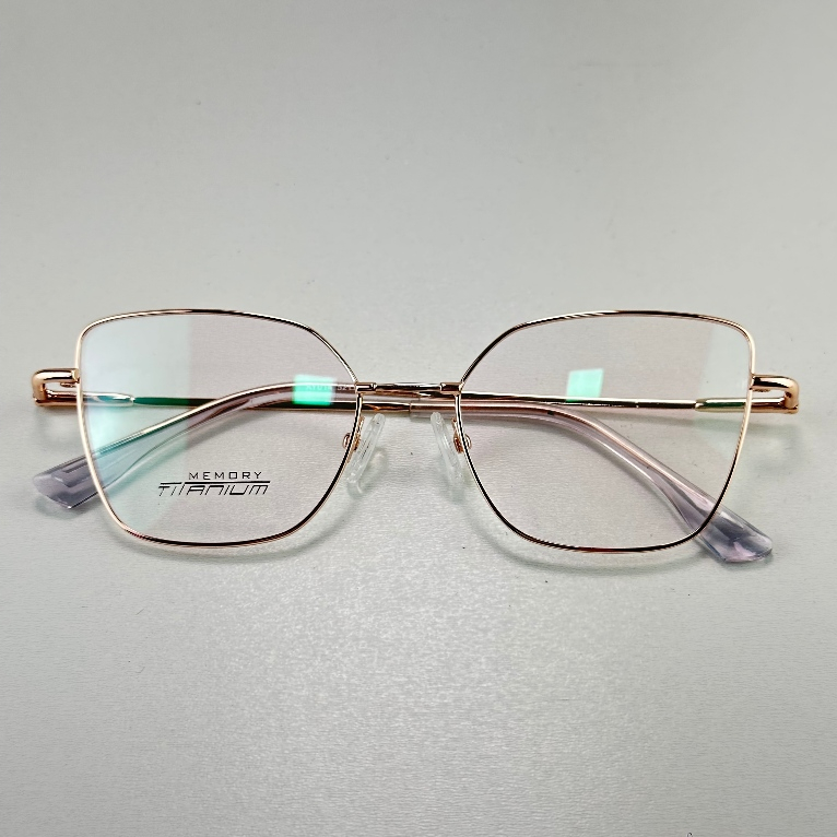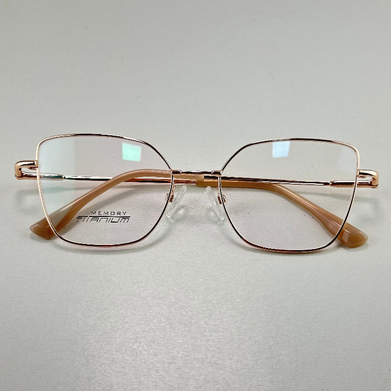 【Betsy】Champanhe Liso Armação de Óculos Feminino | Armação Metálica Gatinha Retro Leve
