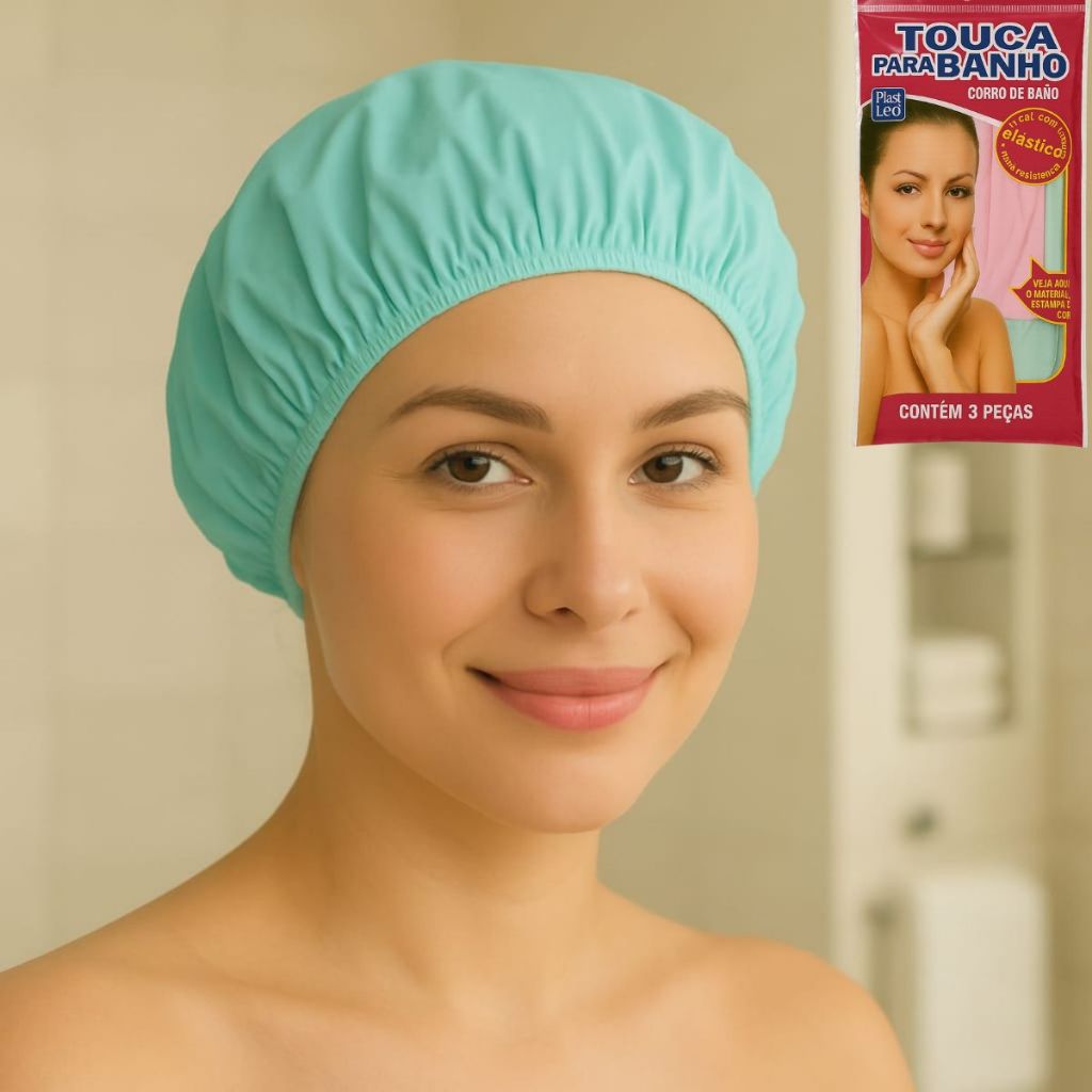 Kit 3 Touca de Banho Plástica Impermeavel– Polietileno com Elástico, Tamanho Único, Impermeável Unissex