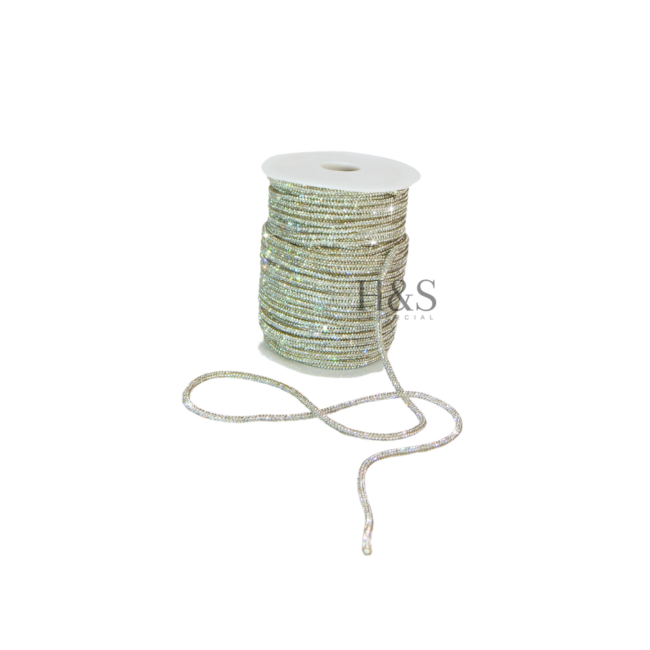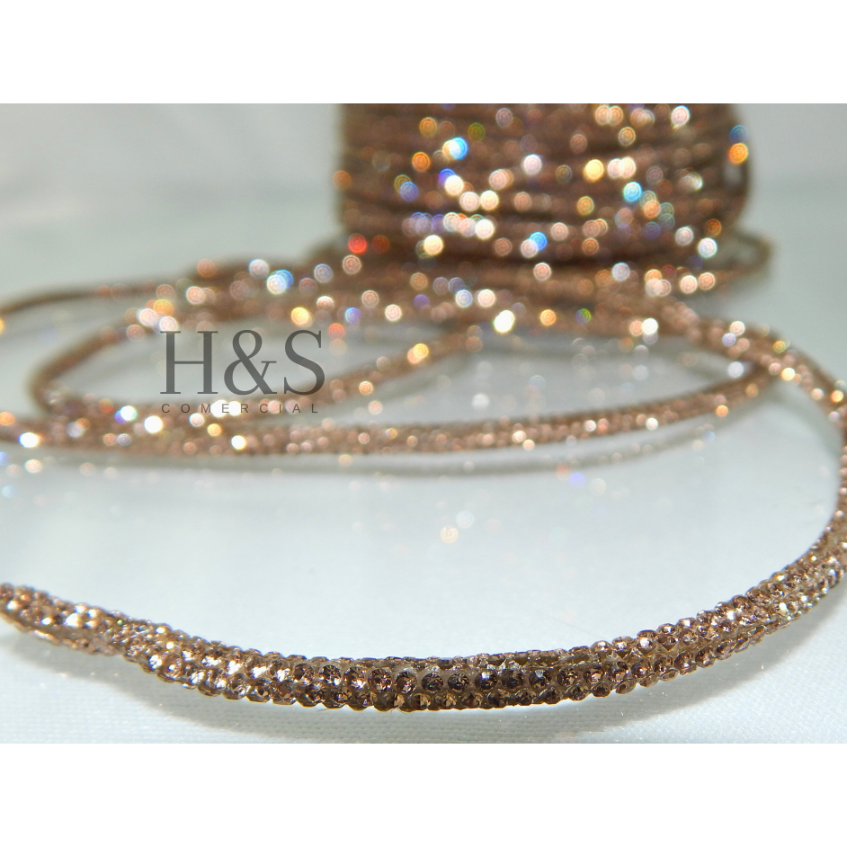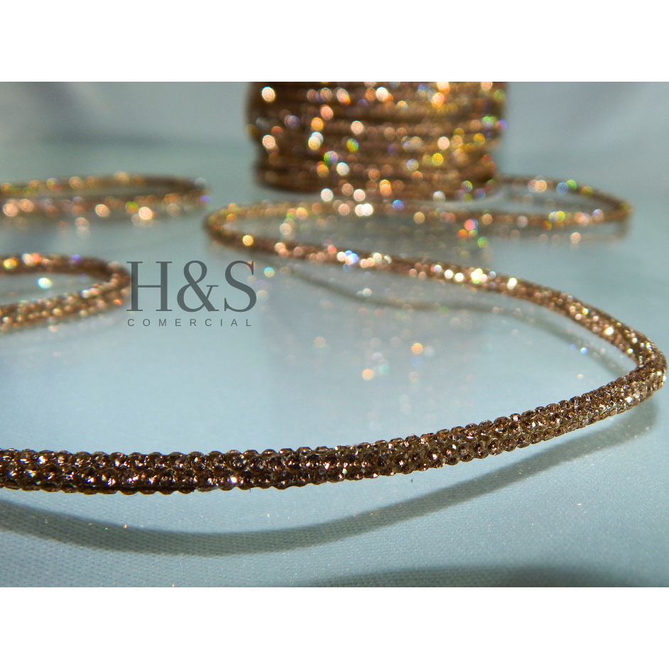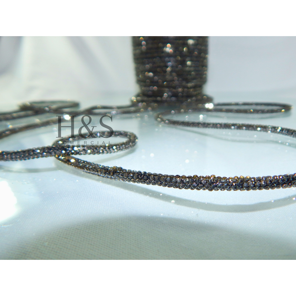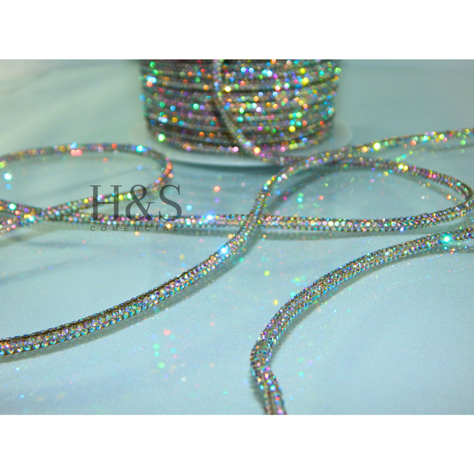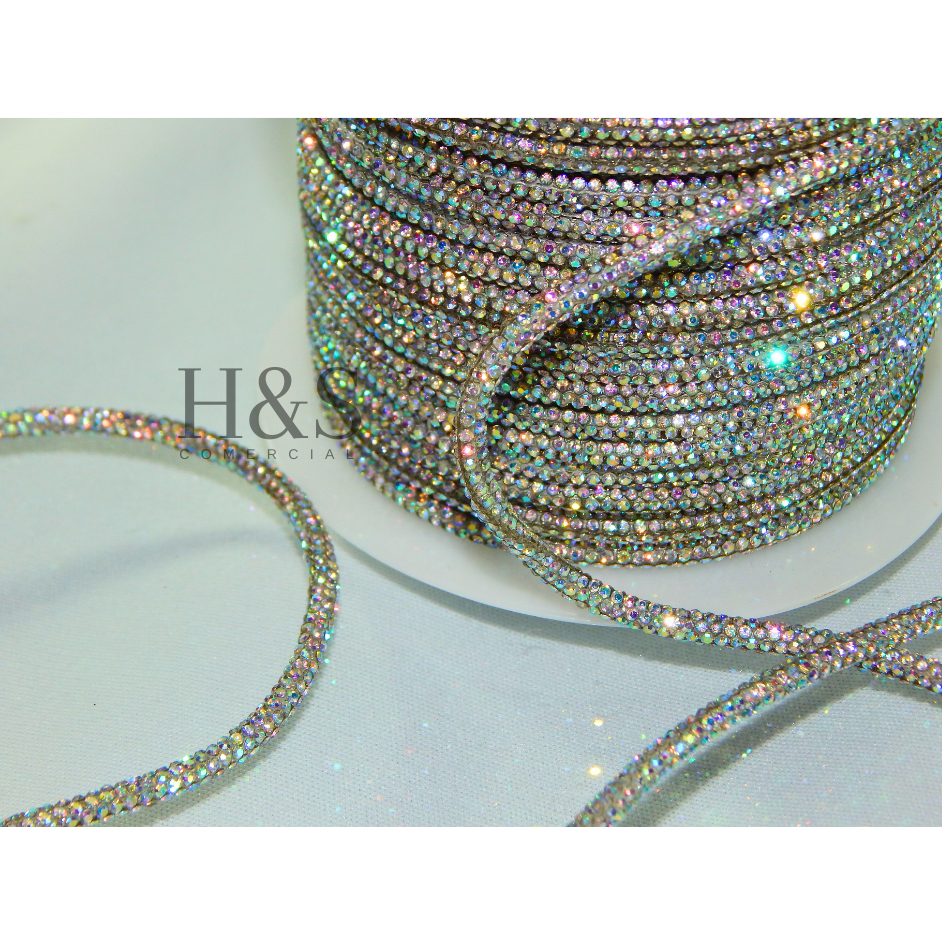 Cordão tubo (cadarço) strass Slim Cristal/Grafite/Boreal/Dourado/Rose Premium 3,5mm - 1 a 4 metros