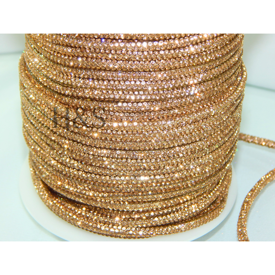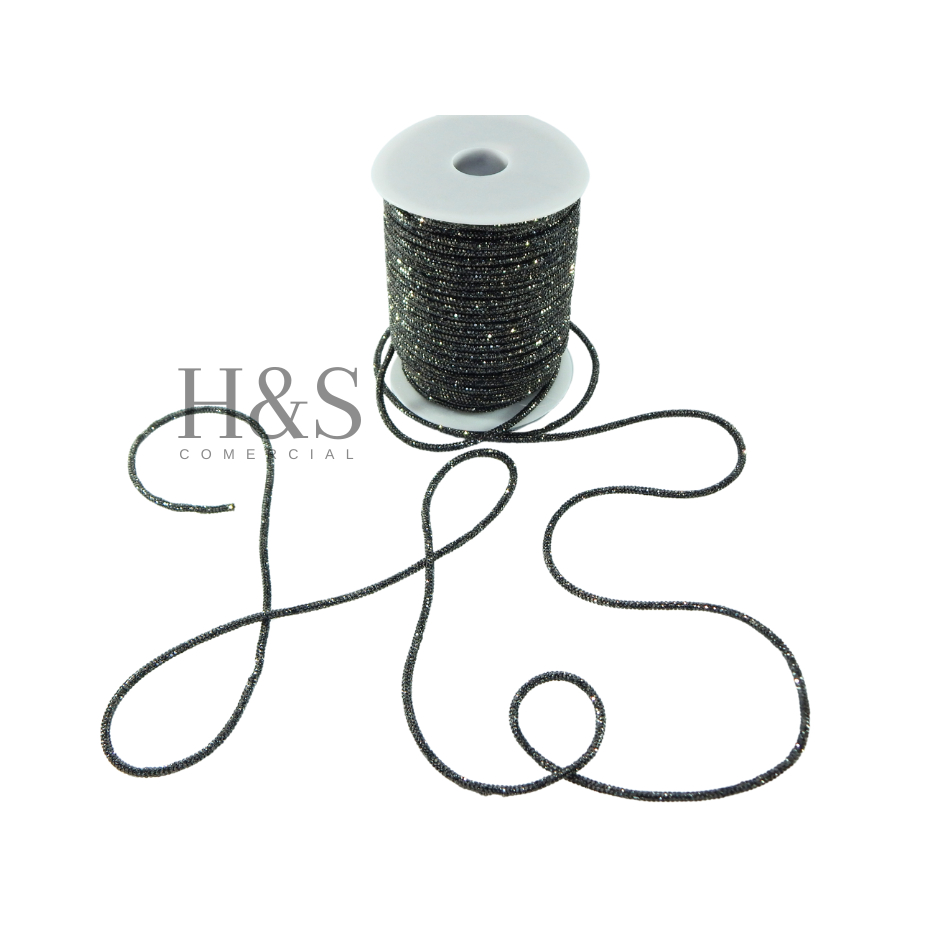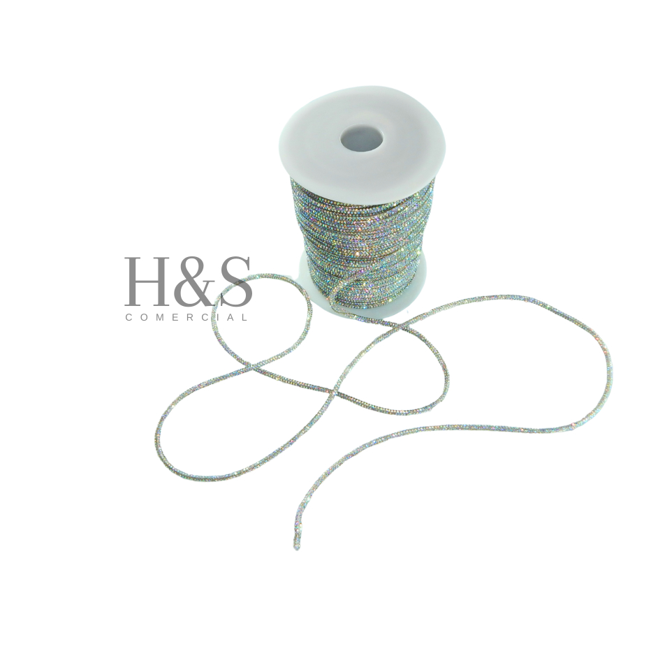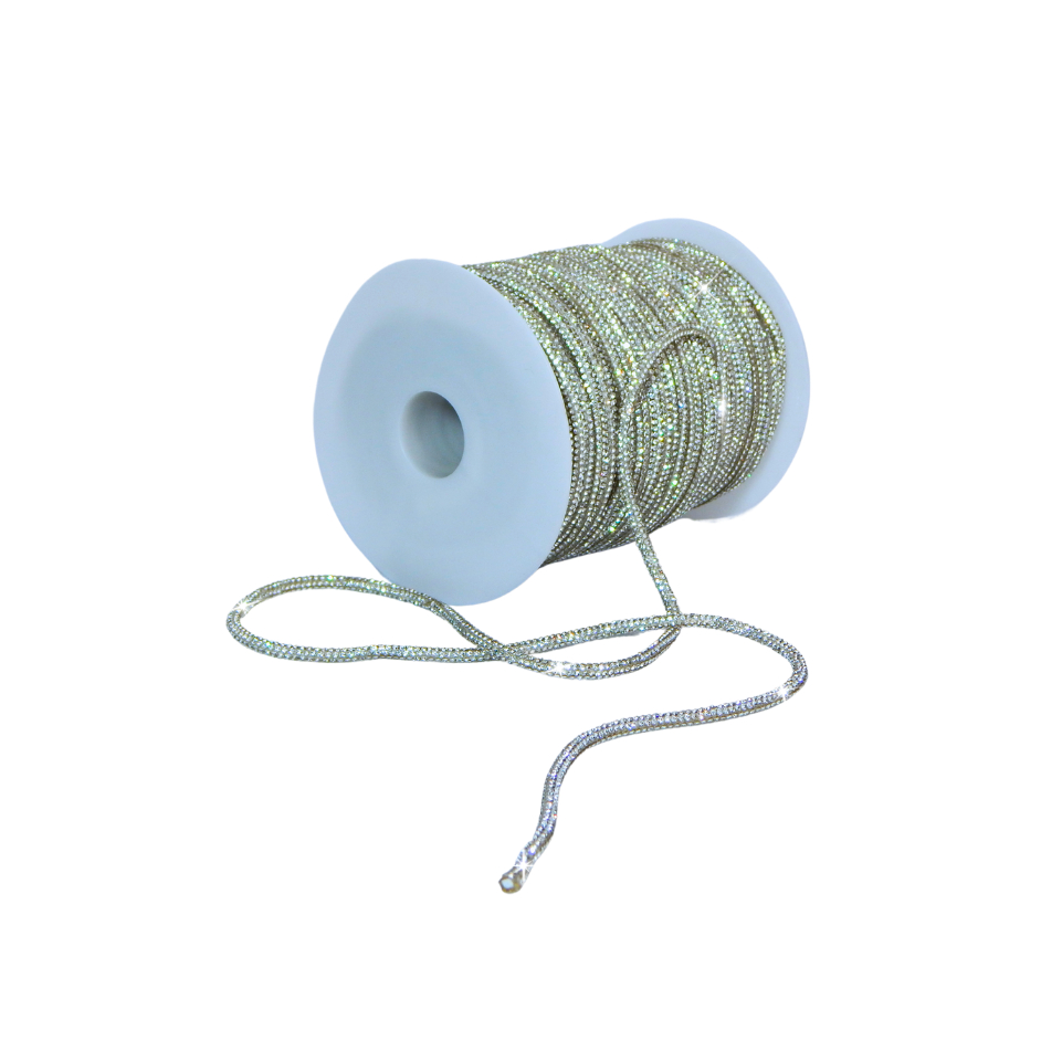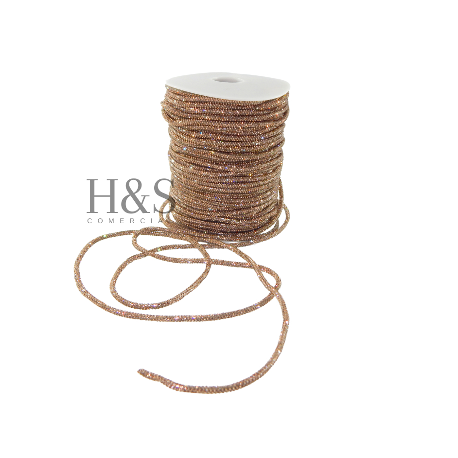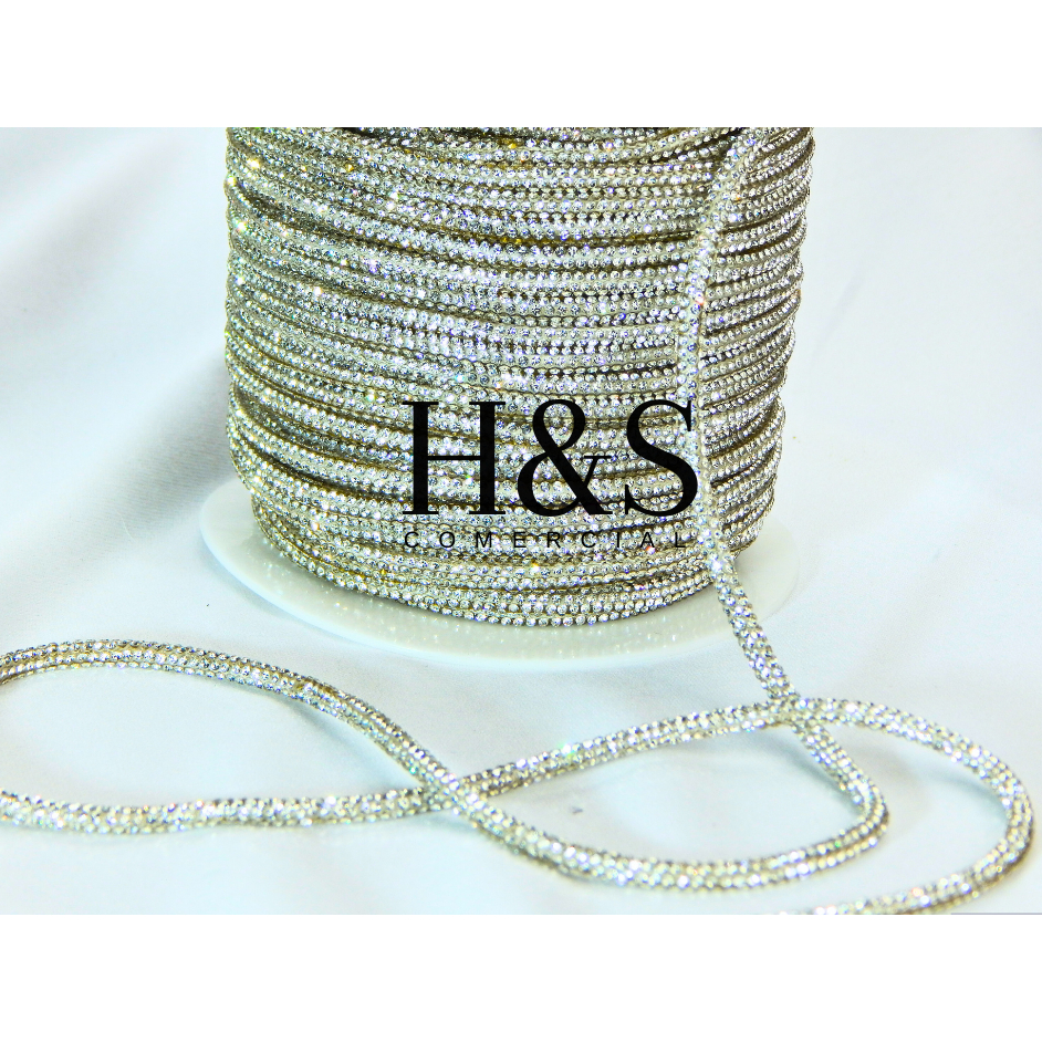 Cordão tubo (cadarço) strass Slim Cristal/Grafite/Boreal/Dourado/Rose Premium 3,5mm - 1 a 4 metros