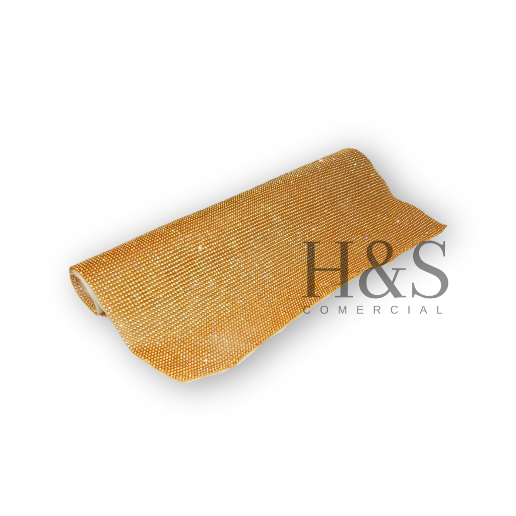 Manta De Strass Dourada Termocolante Premium - Por 45cm