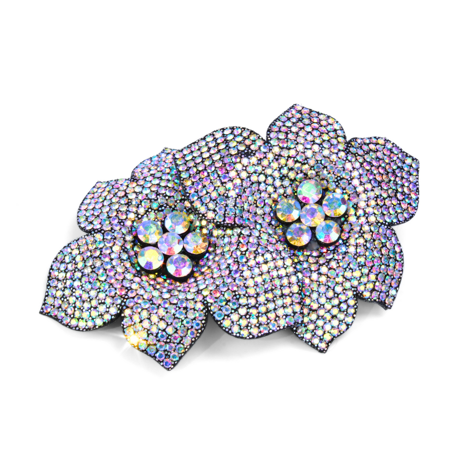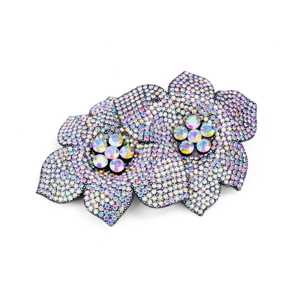 Presilha grampo broche de strass Boreal luxo gala em formato de flor Cristal Brilhante Premium