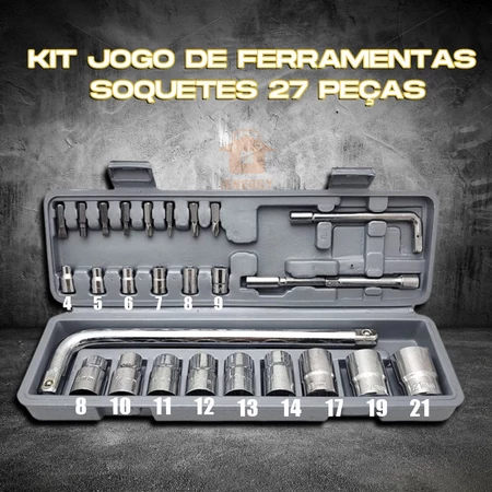 Kit Jogo De Ferramentas Soquetes 27 Peças Cromo Vanádio Completo Titanium