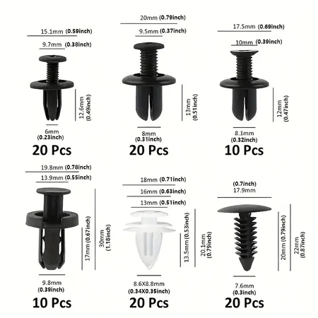 100Peças 6 Tipos de Fixador Plástico Universal para Carro Parafusos de Plástico