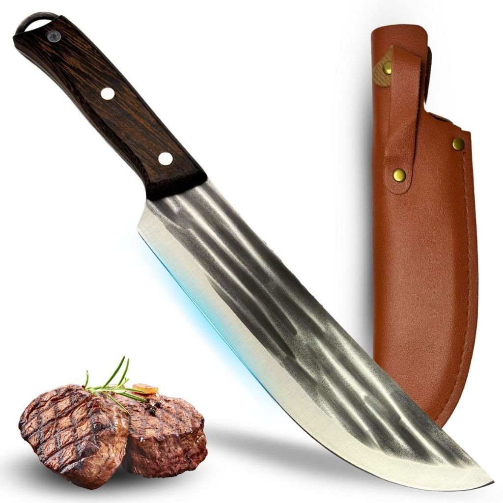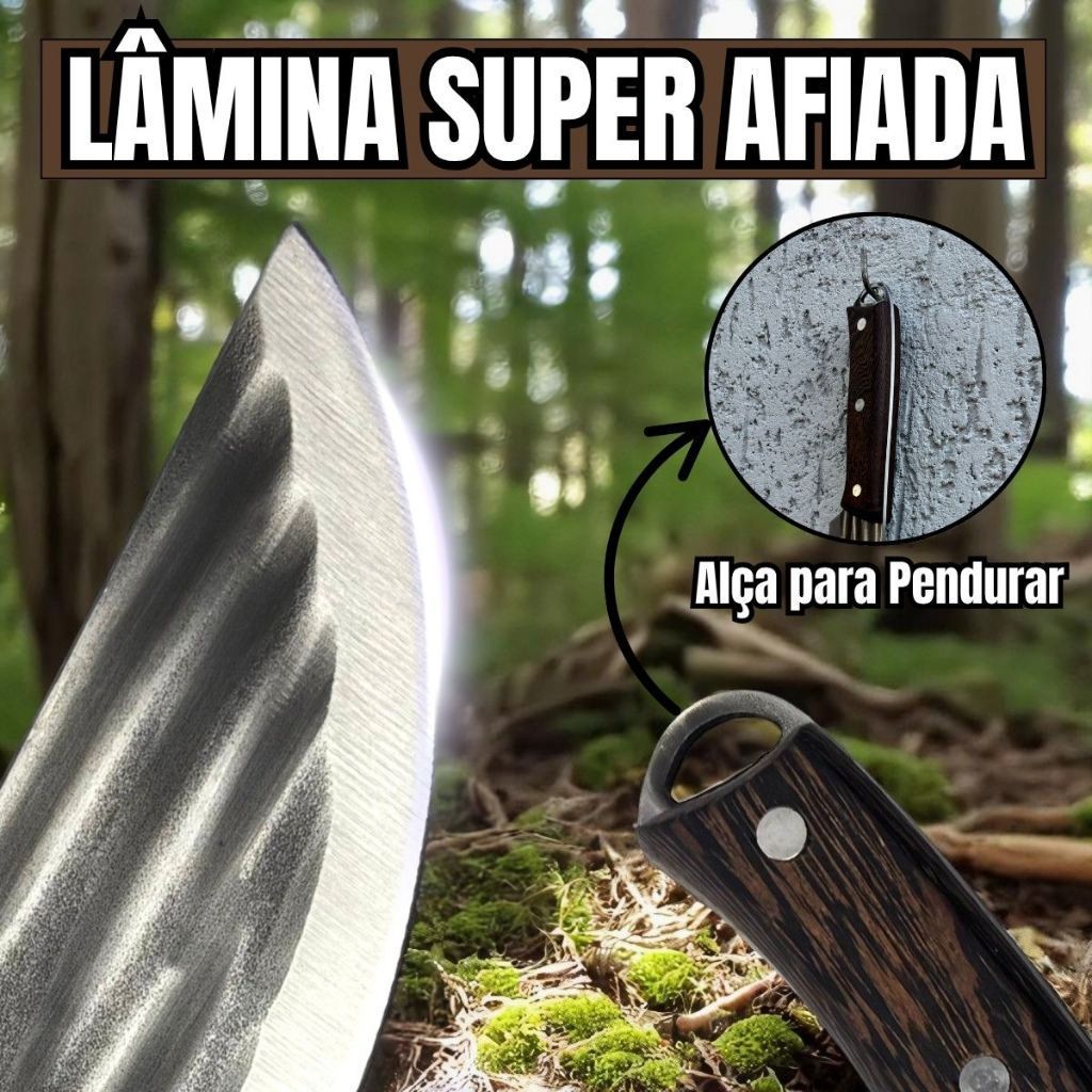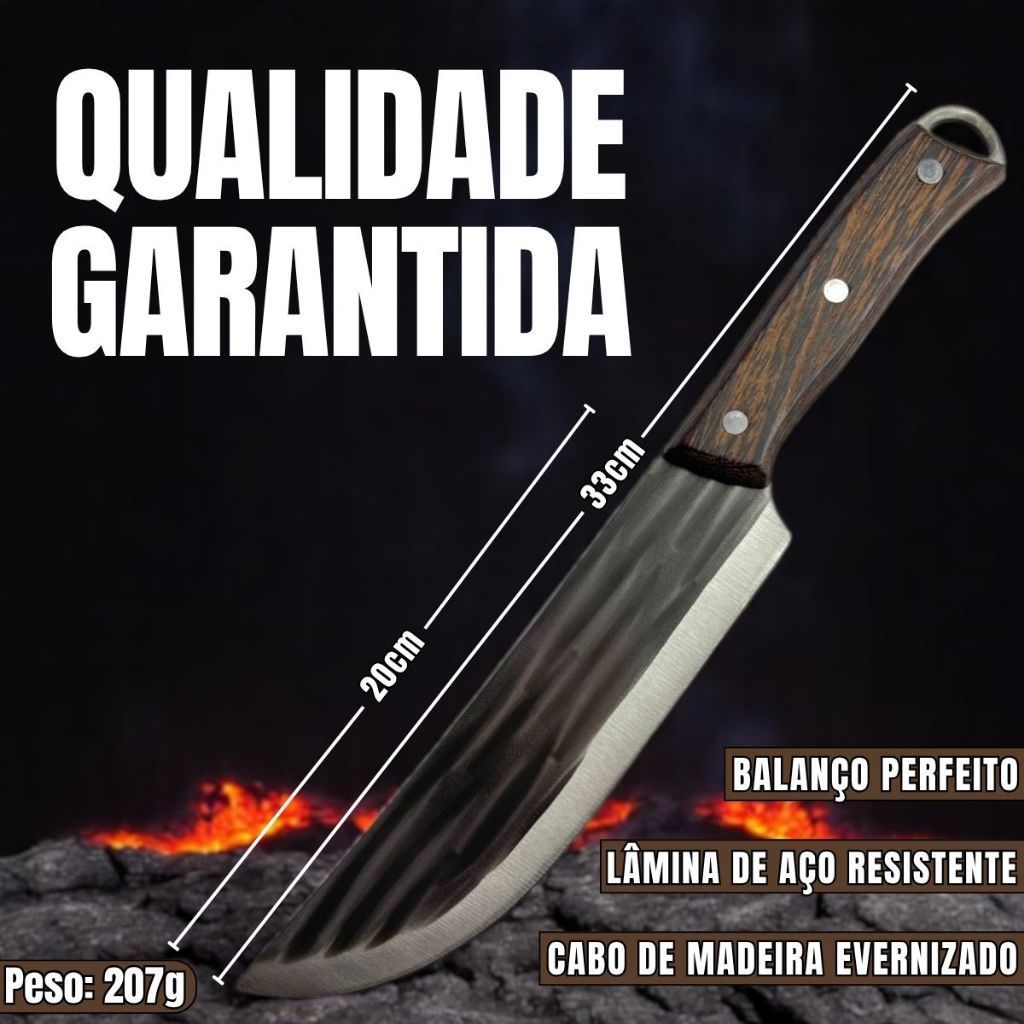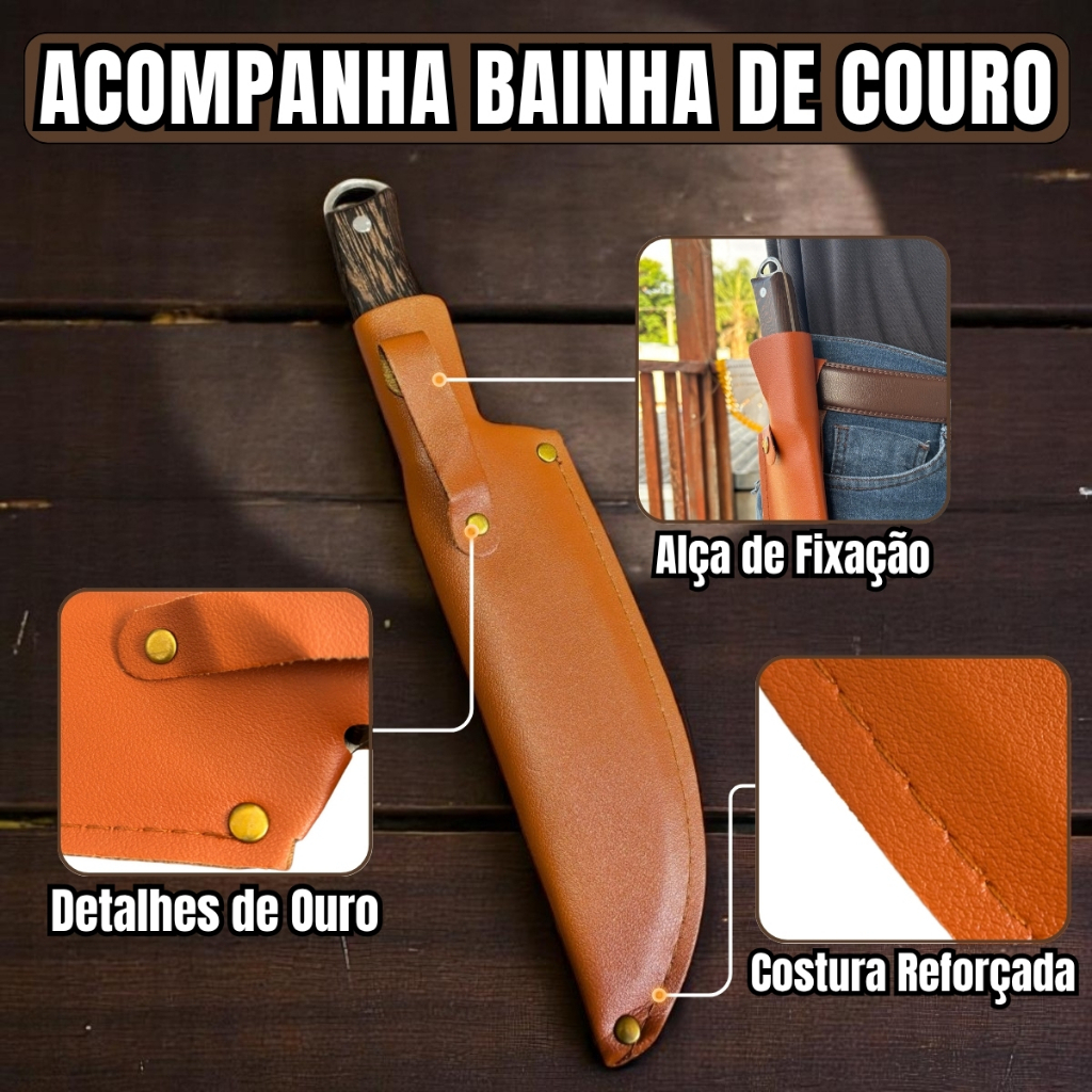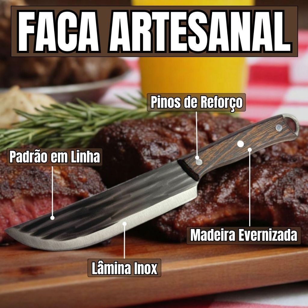 Faca Inox Artesanal Corte Preciso Cabo Madeira + Bainha Churrasco BM-DJ398