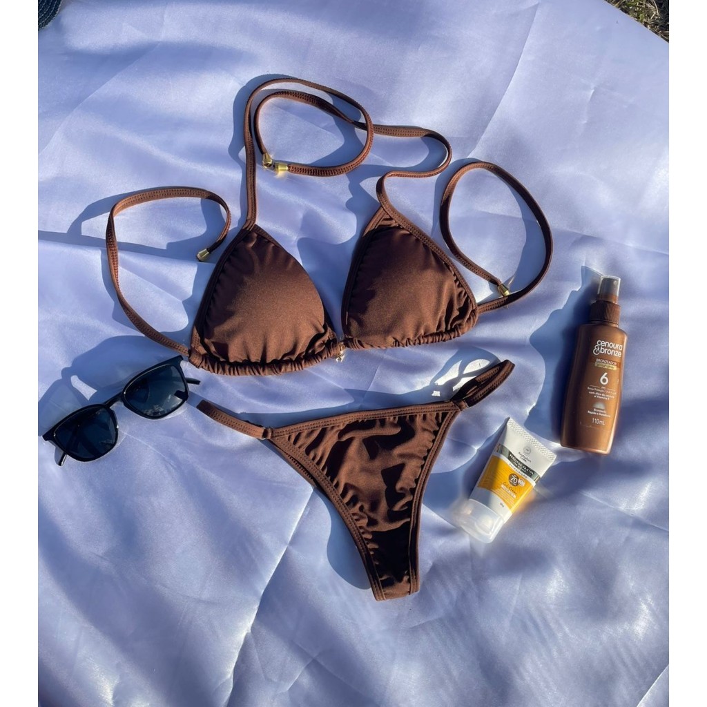 Biquíni Cortininha Feminino Regulável com Bojo Removível Moda Praia Verão 2025 Estilo Brasileiro