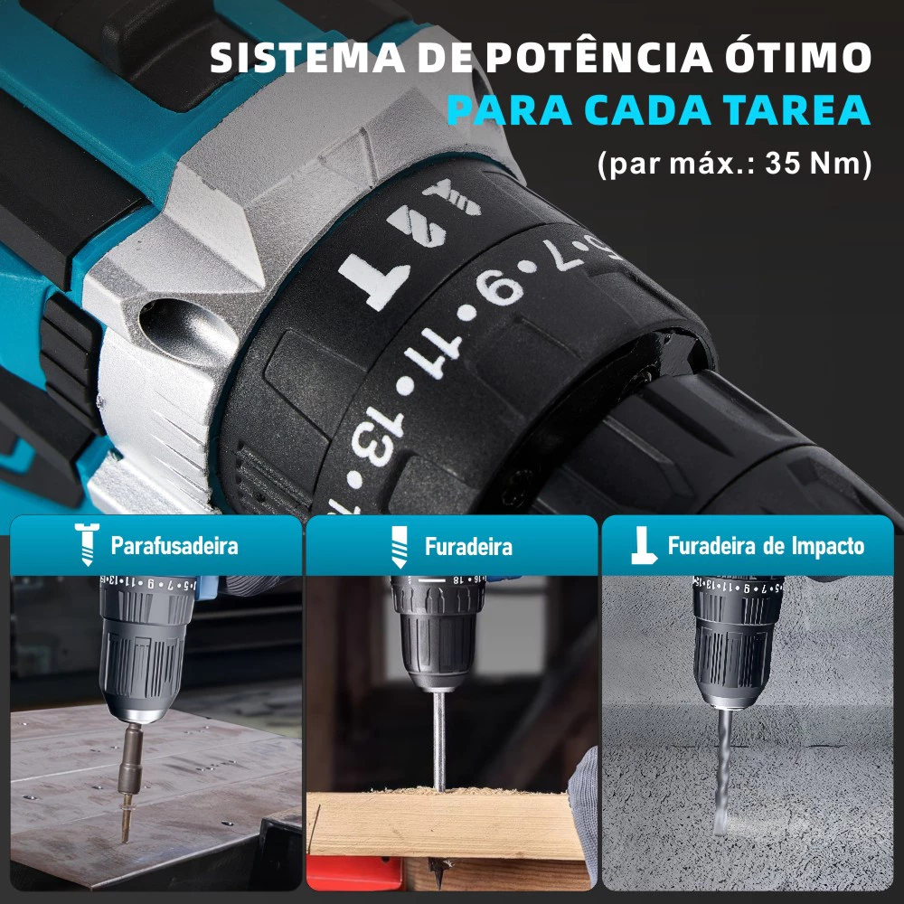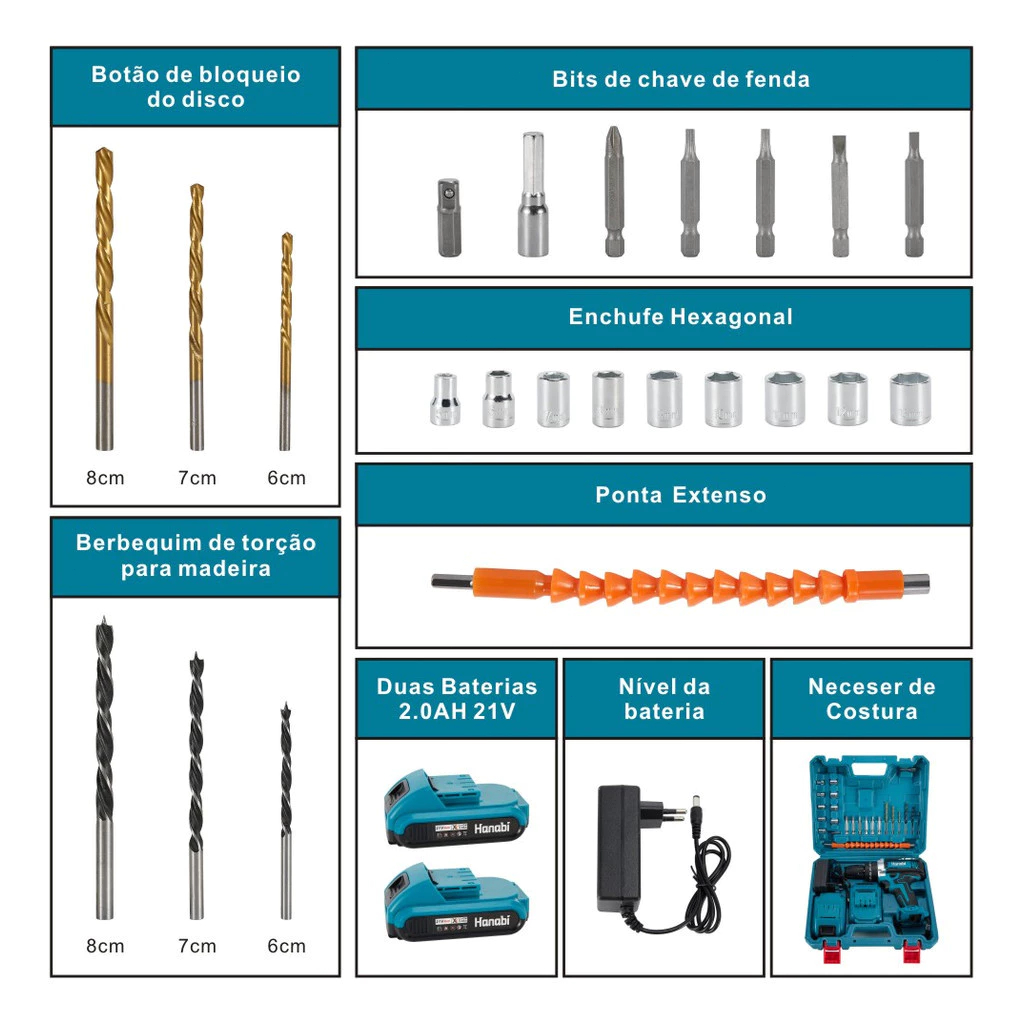 Hanabi Parafusadeira Furadeira 35Nm Profissional 28 Itens com 2 Baterias 4.000mAh