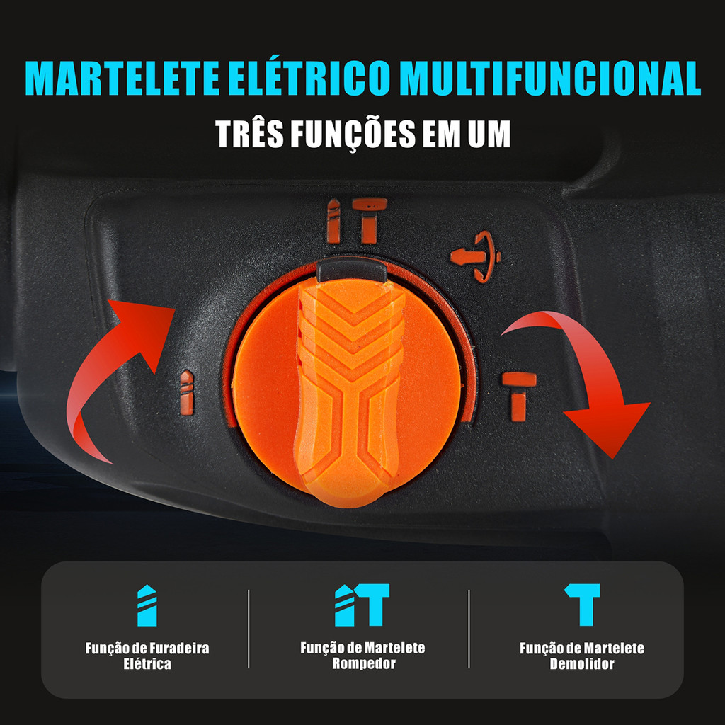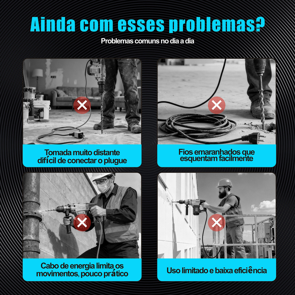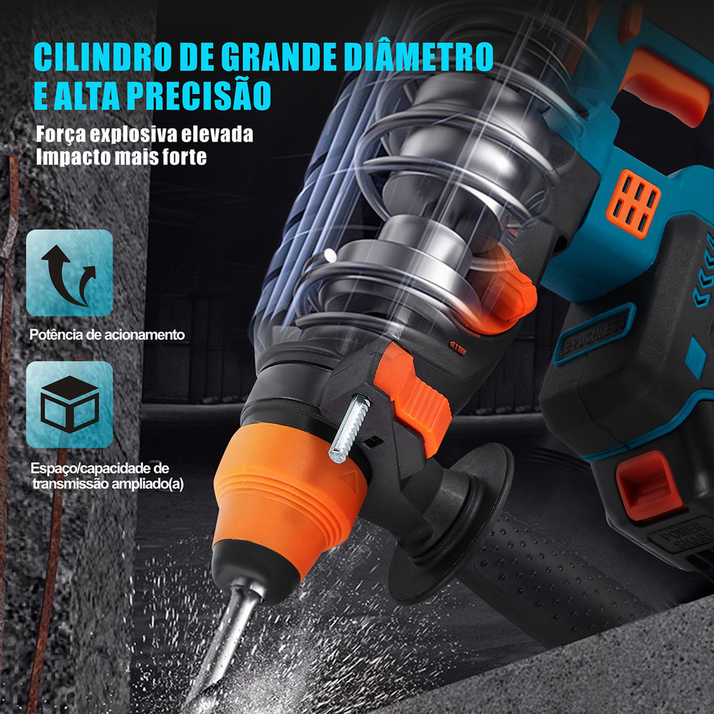 Martelete Rotativo Rompedor Hanabi 21V 4.0Ah SDS Plus 26mm Sem Fio Profissional 3 Funções 2 Baterias