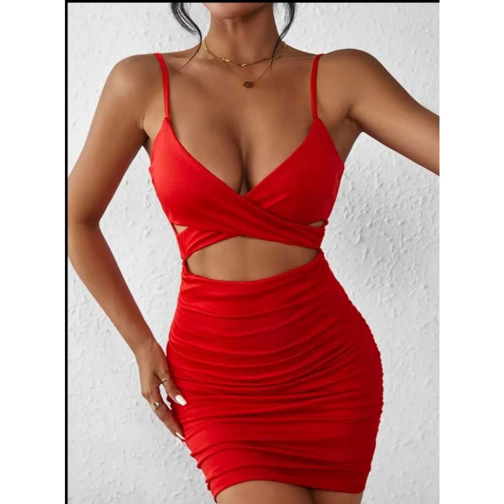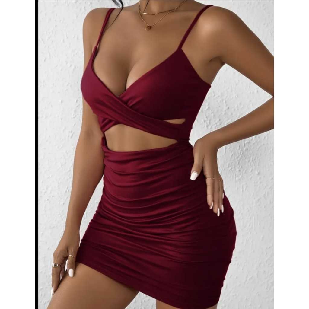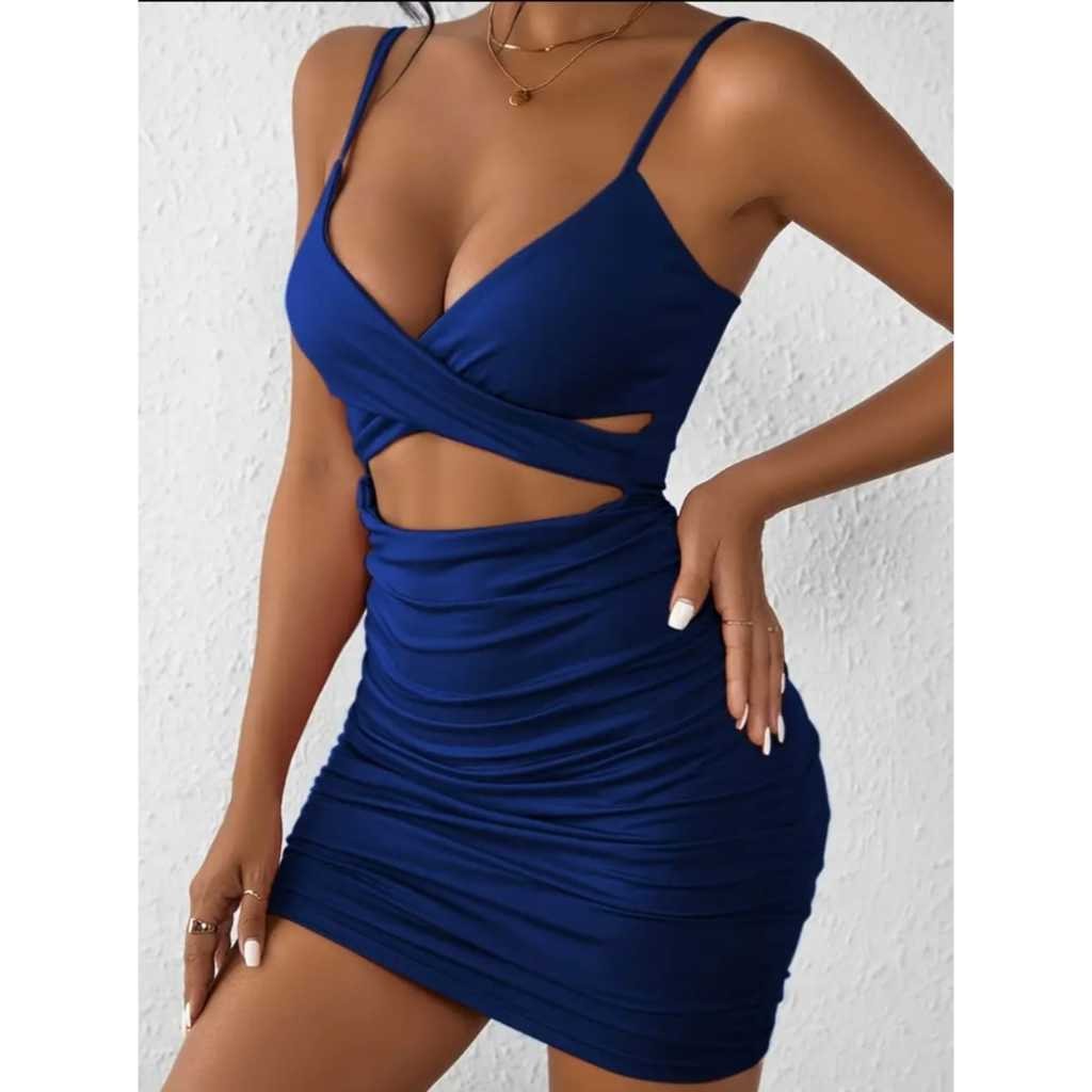 Vestido Feminina mini sexy com Recortes Franzidos com Decote V Sem Mangas nimi saias
