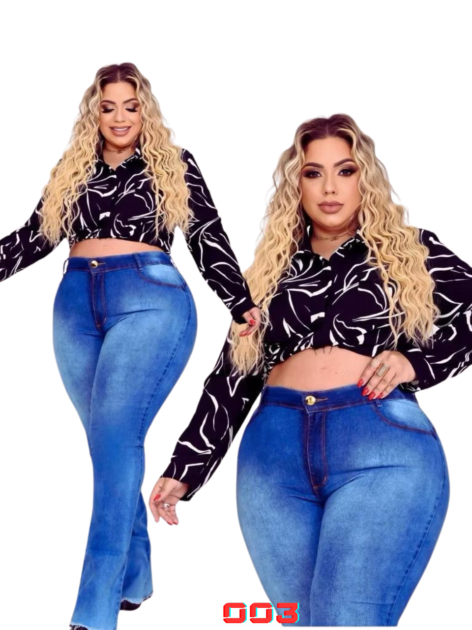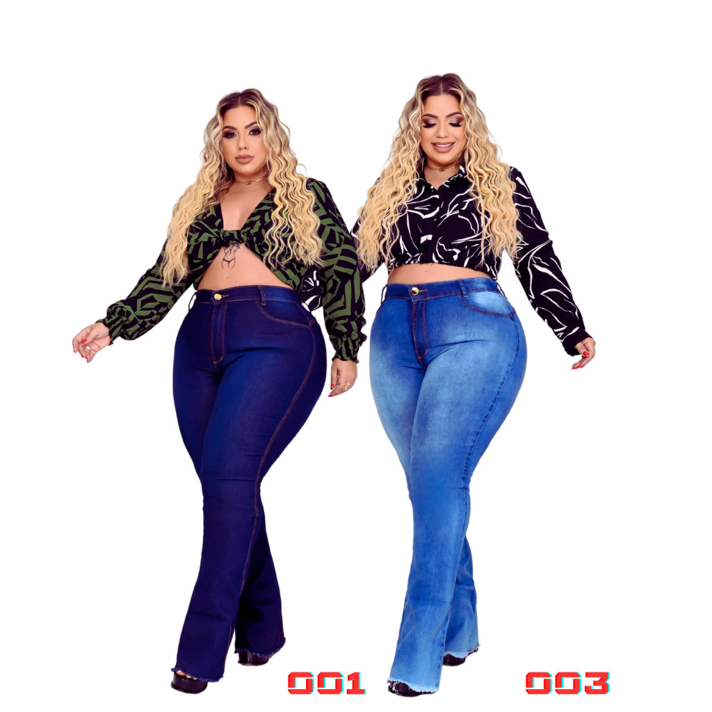 Kit 2 Calças Jeans Flare Feminina Plus Size Cintura Alta Com Lycra Efeito Premium Luxo Curve