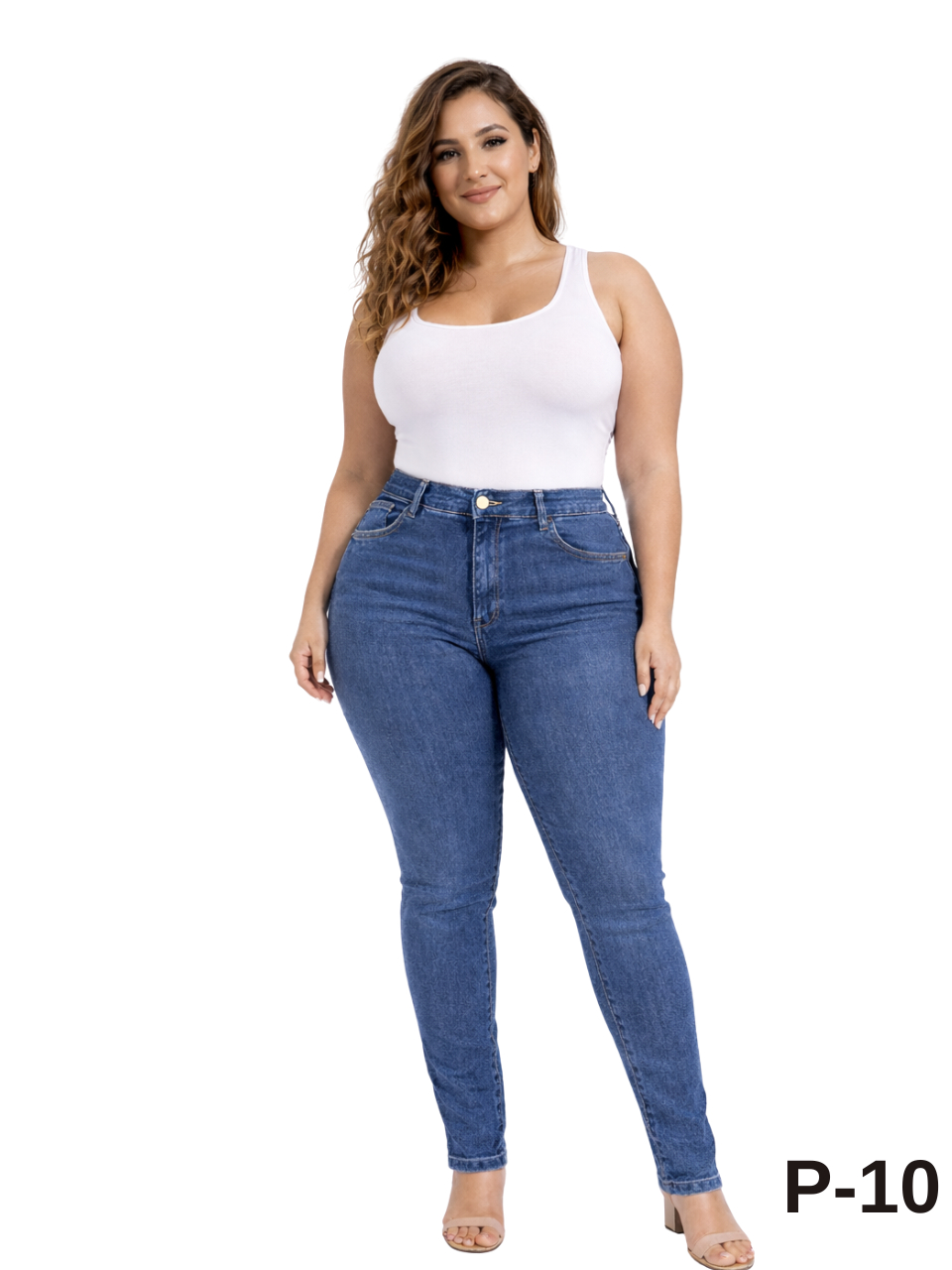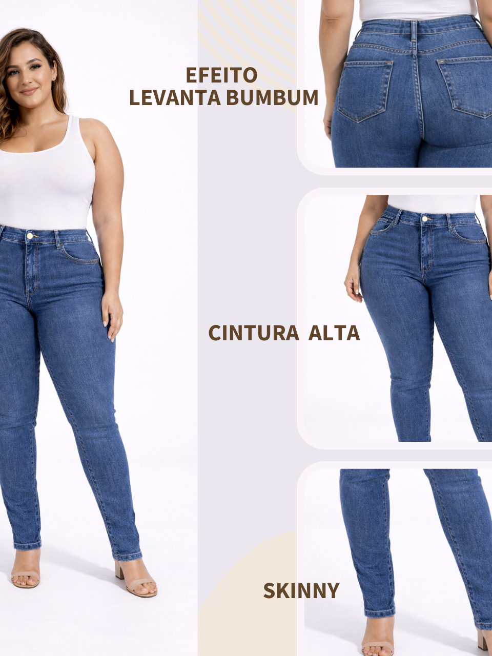 Calça Jeans Feminina Skinny Plus Size Cintura Alta Com Elastano Confortável