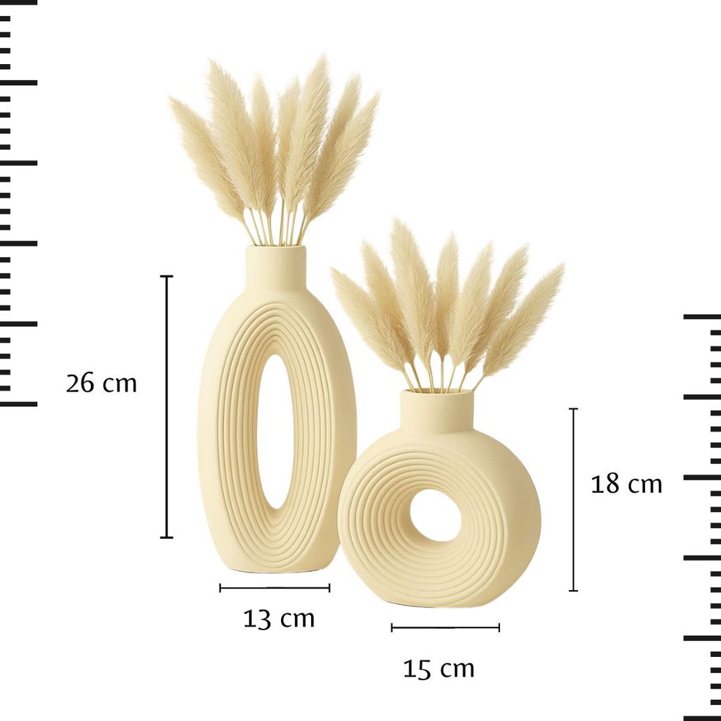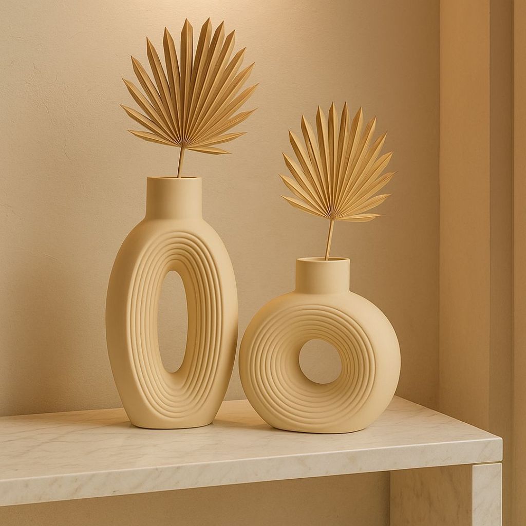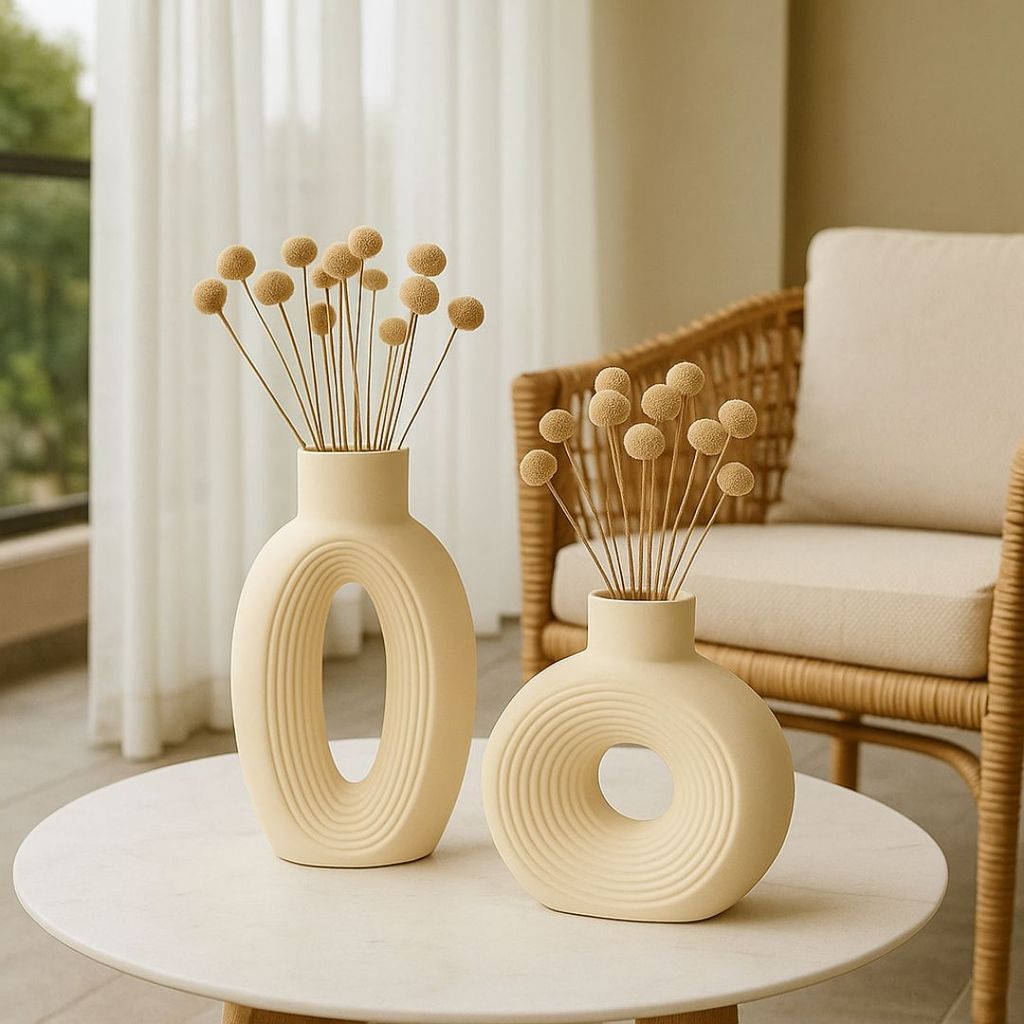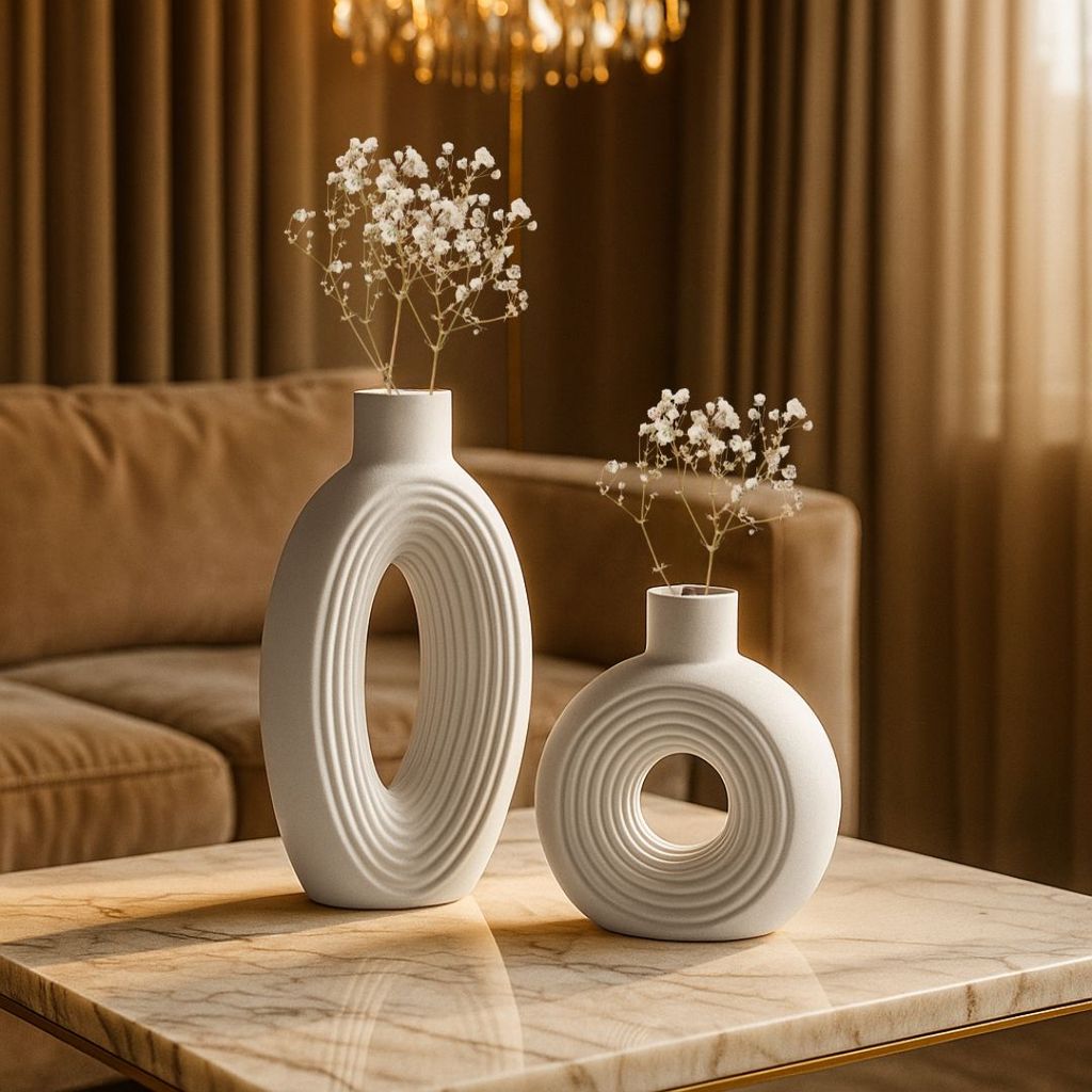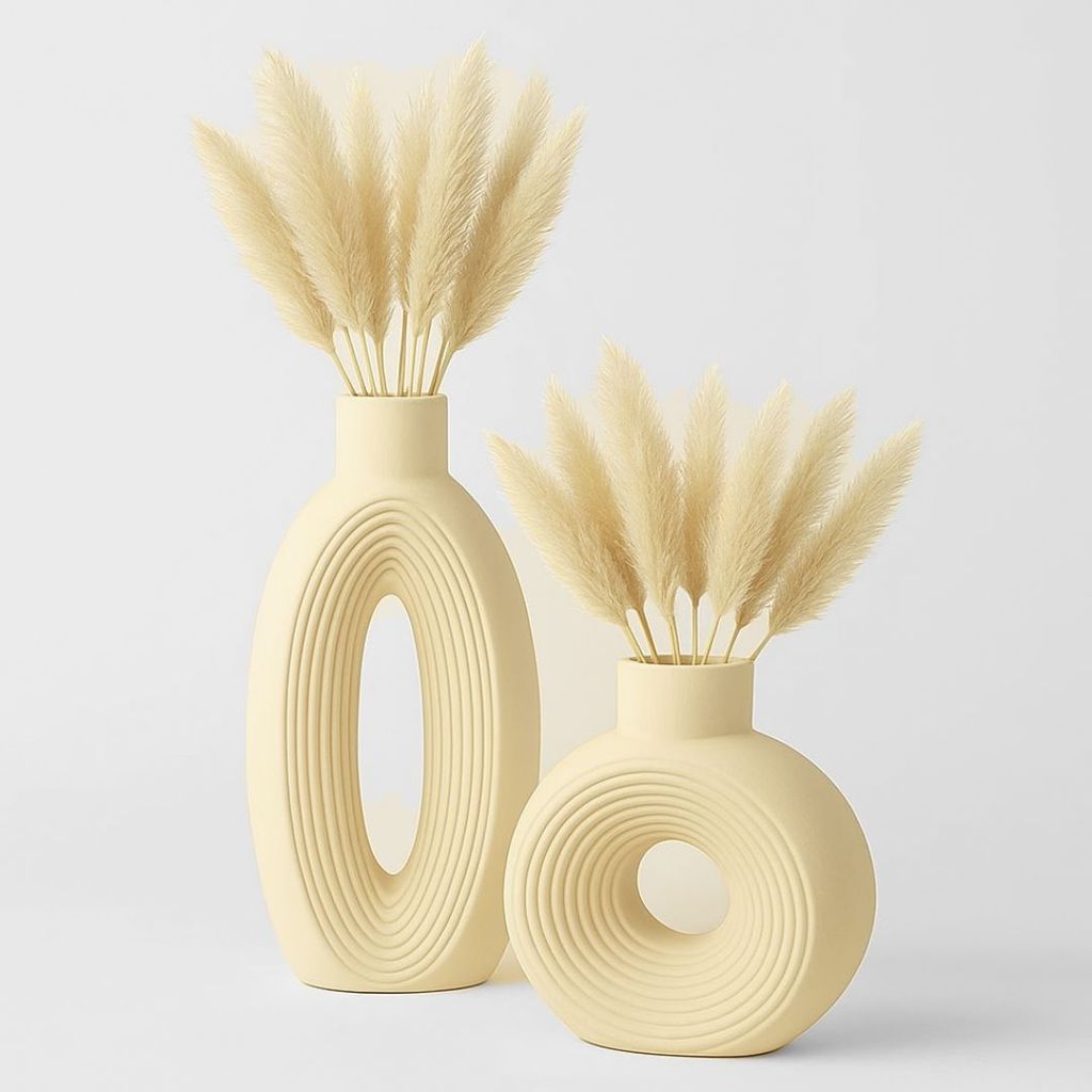 Dupla de Vasos Decorativos em Gesso Branco e Marfim – Estilo Contemporâneo Oval Ondulado para Sala