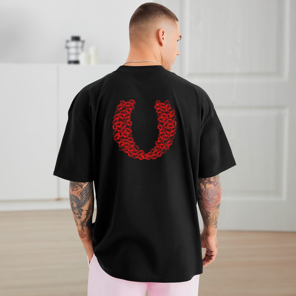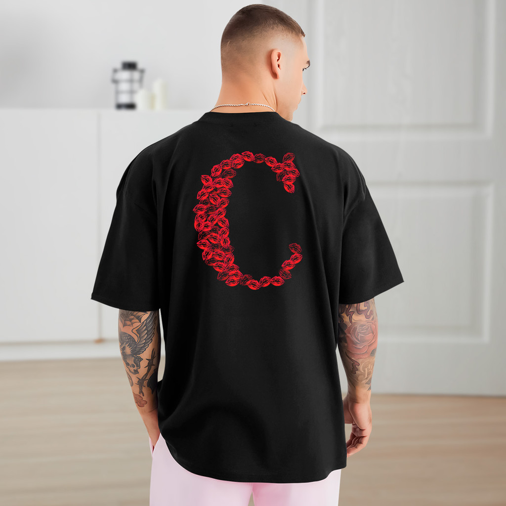 Camiseta Preta BEIJOS para Casal | Estampa Criativa Frente e Costas | Look Combinando com Estilo