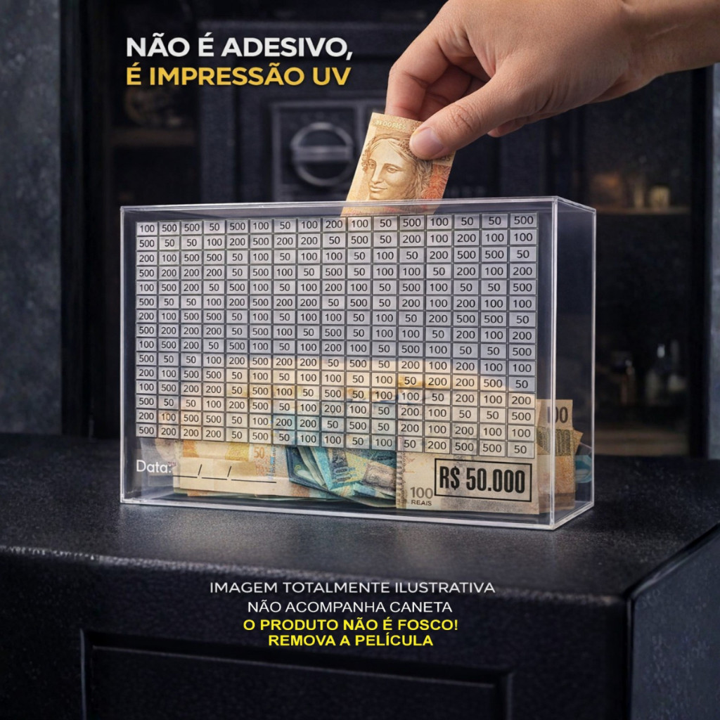Cofre 50 Mil Desafio Método Japonês Juntar Dinheiro Economizar Em Acrílico