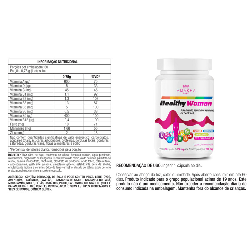 Suplemento Alimentar e Vitamina Healthy Woman 30 cápsulas | Amakha Paris