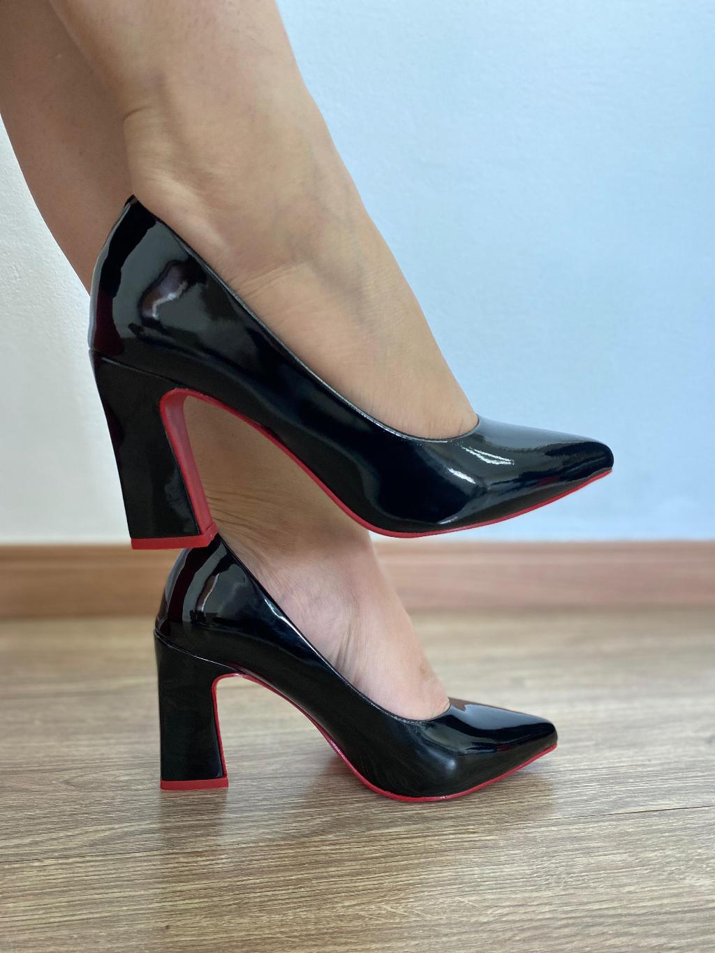 Scarpin Salto Grosso Alto Sapato Verniz Confort Basico Luxo