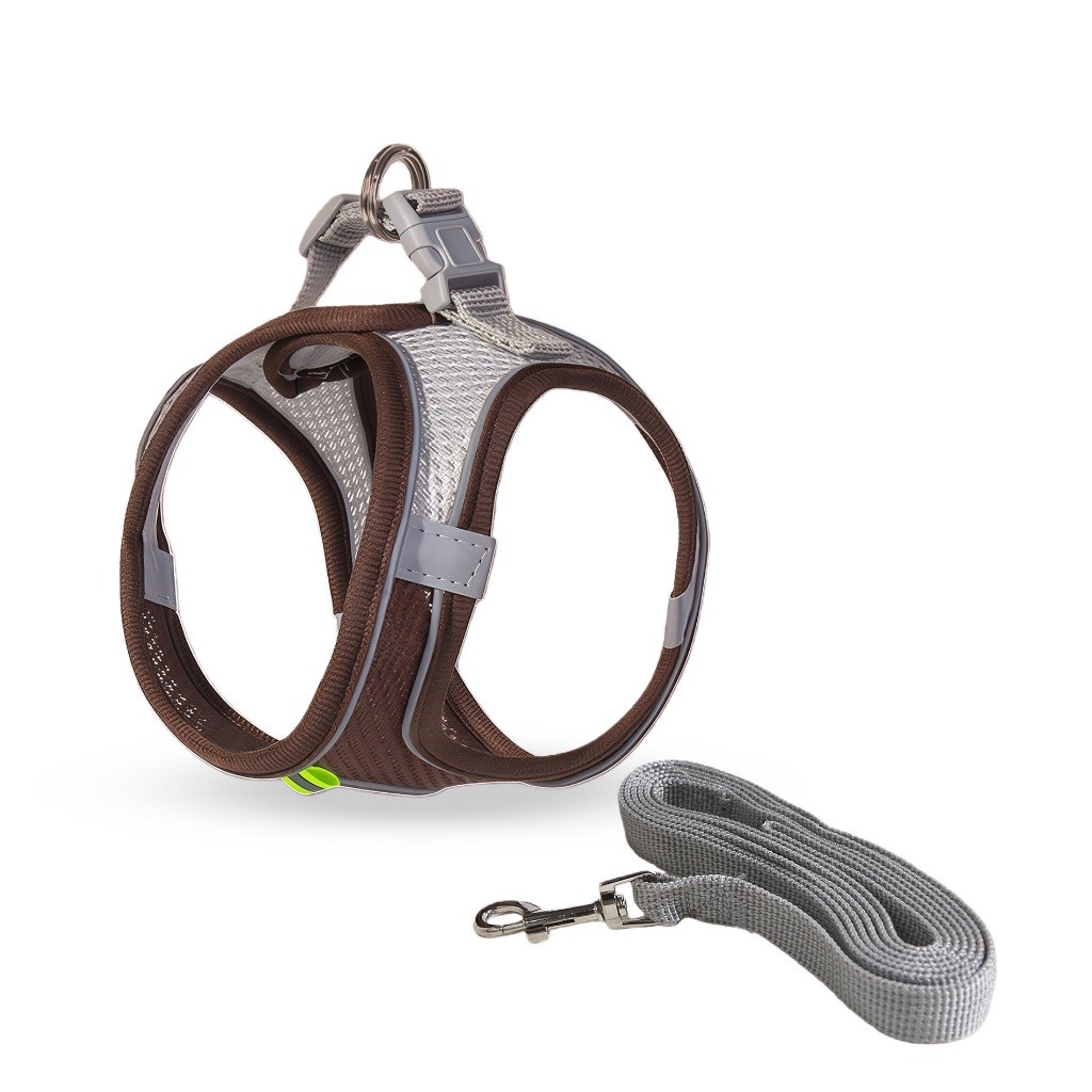 Coleira Peitoral Cachorro E Gato, Conjunto De Gui Coleira TipoArreios E Trela Reflexivos Para Cães Camuflagem-Ajustáveis
