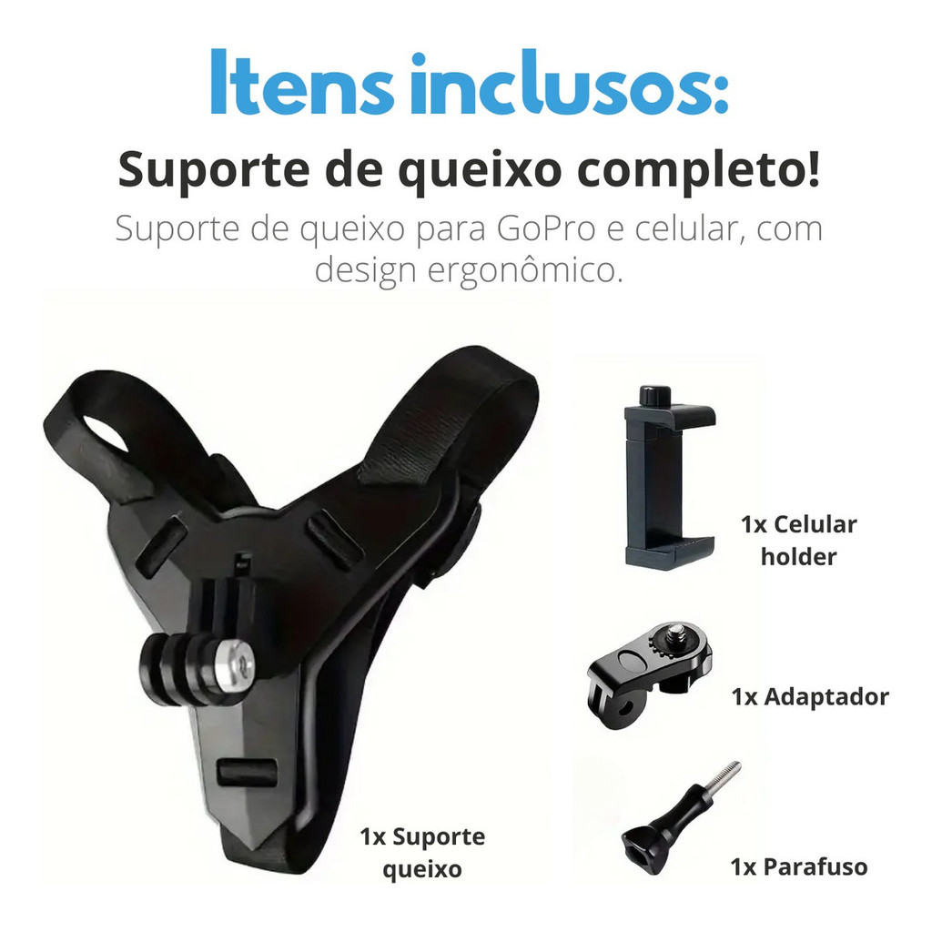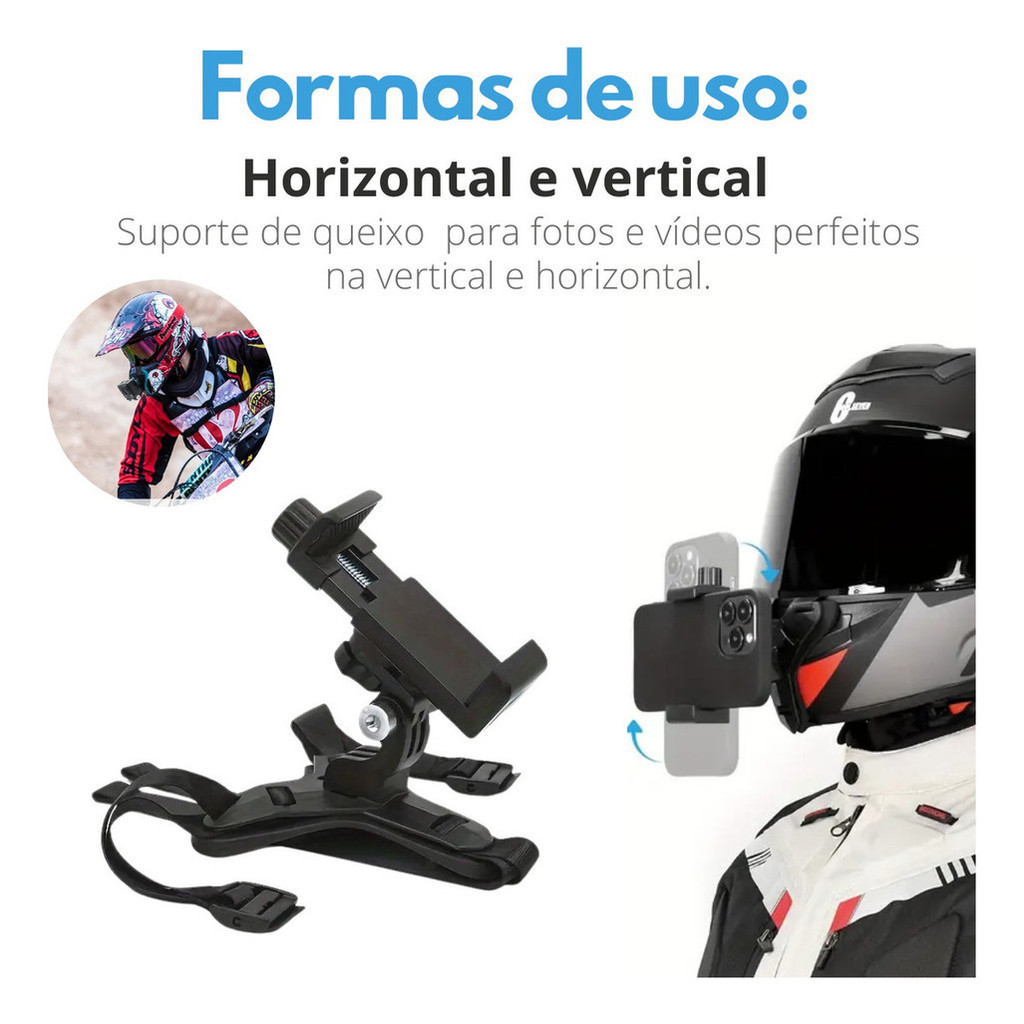 Suporte Universal Capacete Motocicleta Antichoque Para Celular Câmera Ação GoPro Sjcam Insta360 Queixo