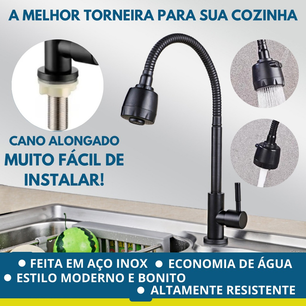 Torneira Gourmet Flexível Cozinha Pretomesa Parede Cobre Banhado a Preto Duplo Jato Cone 1/4 de Volta (Cobre)
