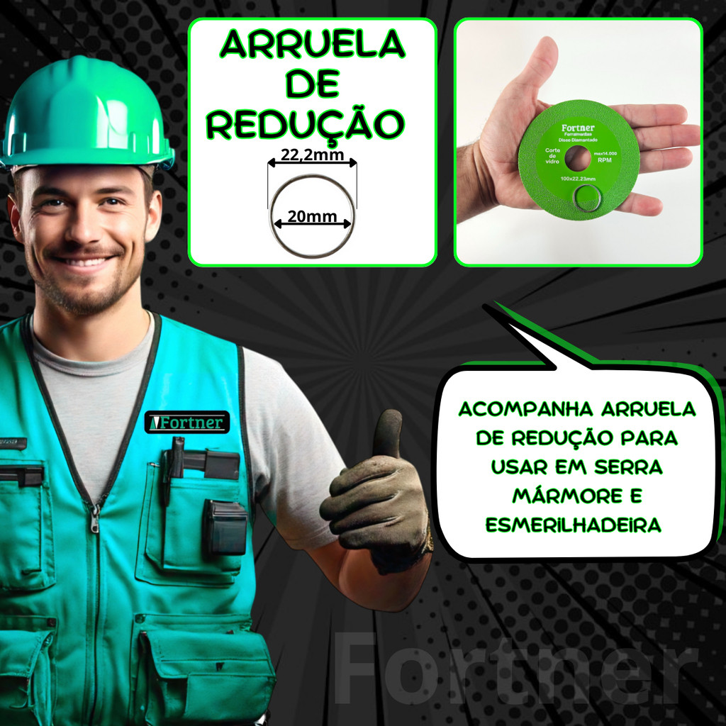 Kit 1/3/5 Discos Diamantado 100mm p/ Cerâmica/Vidro/Porcelanato Areia 15mm c/ Anel 20mm