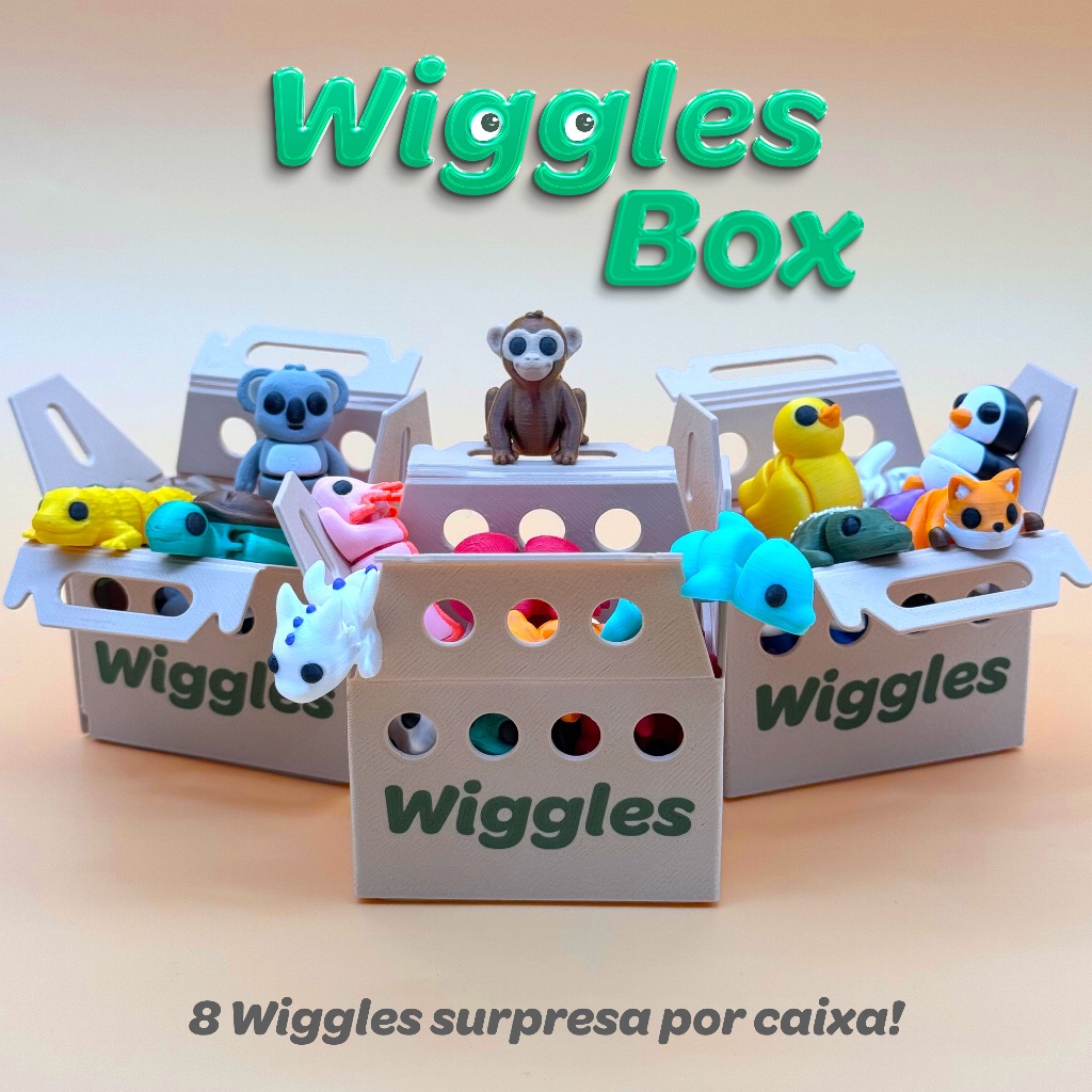 Wiggles Box - Caixa Surpresa com Mini Animais Lembrancinha Flexíveis Bixinhos Fidget