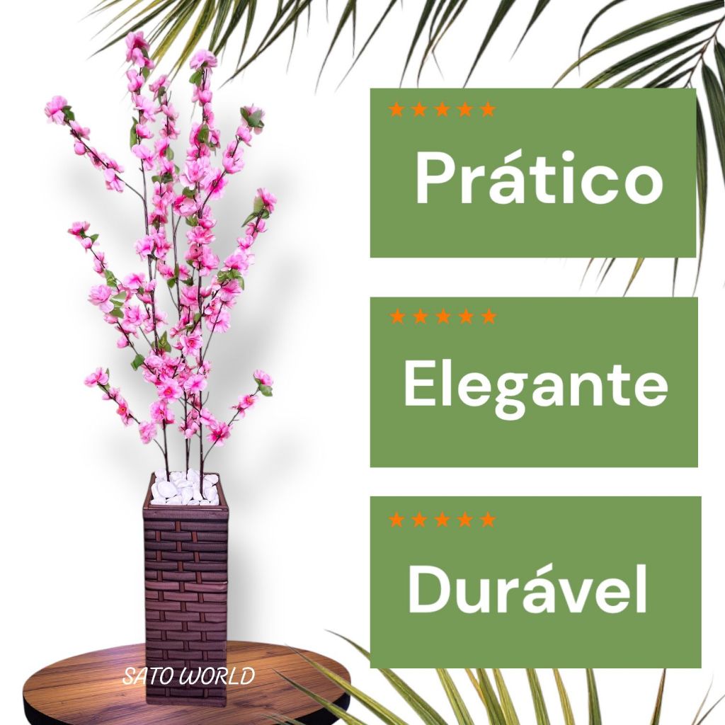 Decoração Charmosa: Jarro de Cerejeira e Pessegueira Artificial em Vaso de Fibra de Madeira COLU