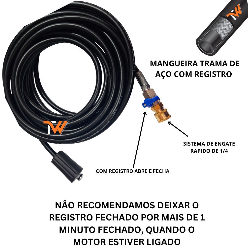 Mangueira Trama de Aço + Registro + Bicos Coloridos Para Karcher HD 585