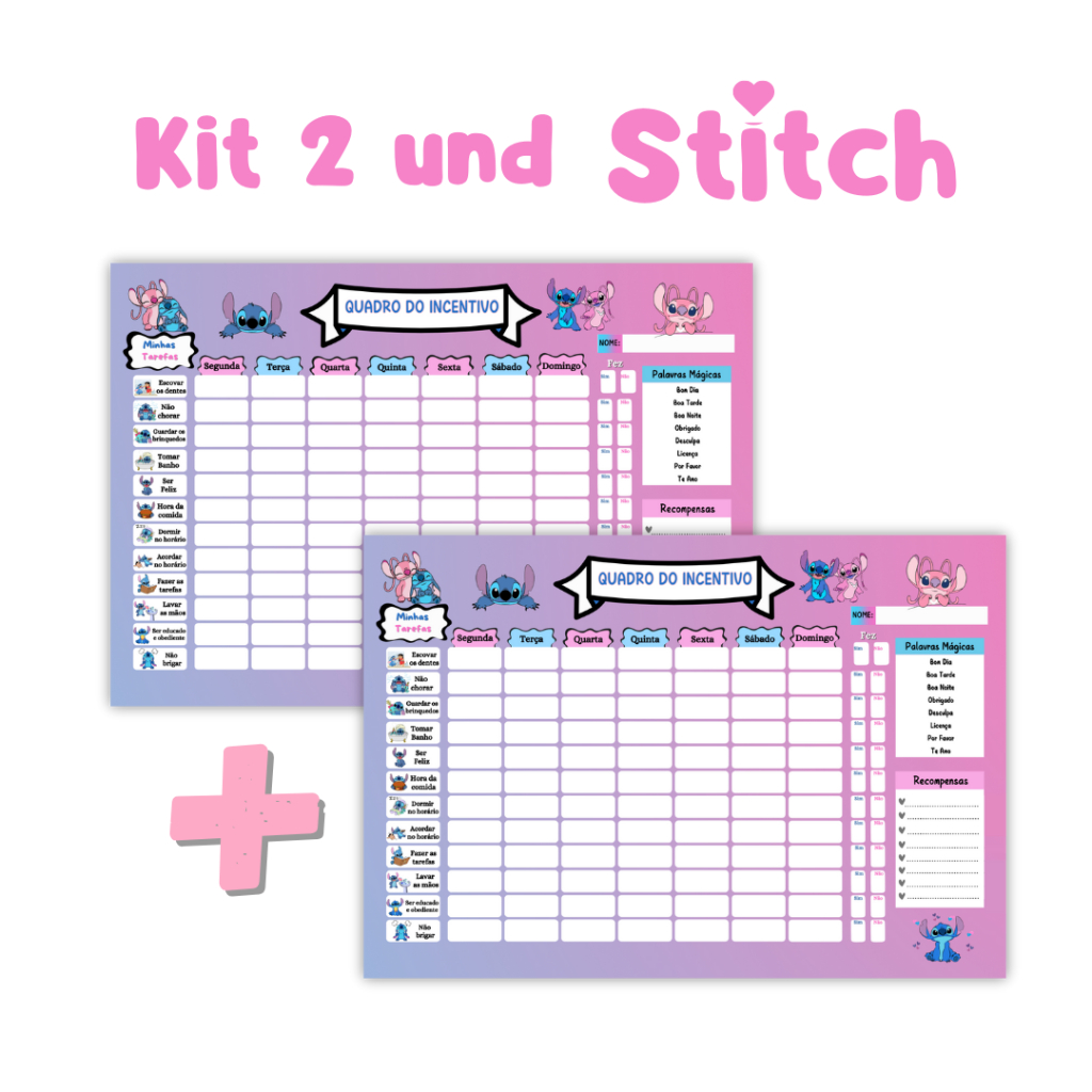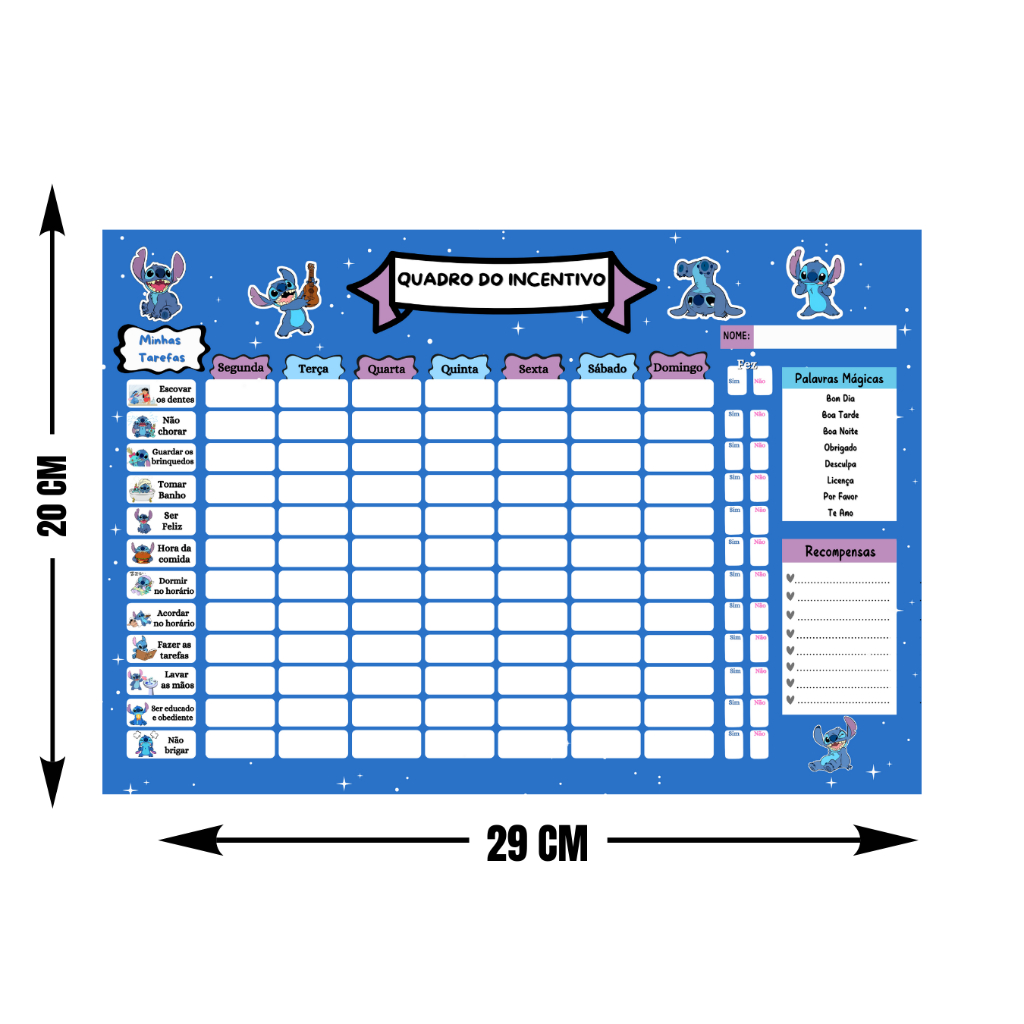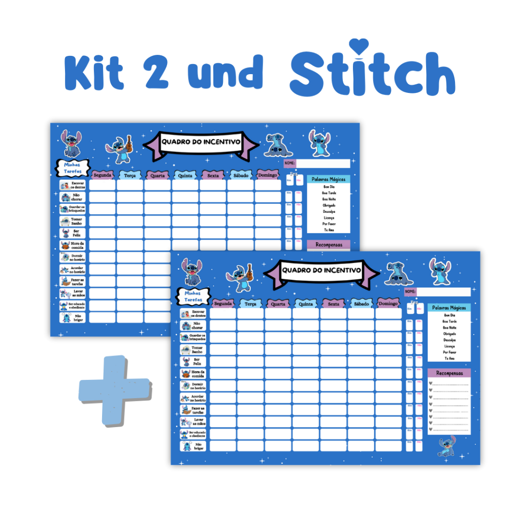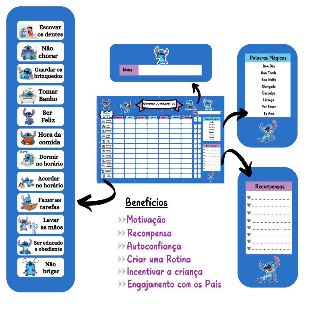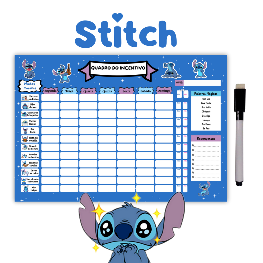 Quadro de Recompensa Disciplina - Quadro De Rotina Infantil Lilo Stitch - Atividade Para Incentivo