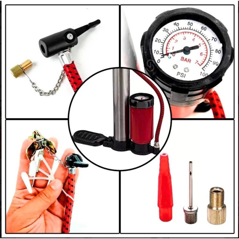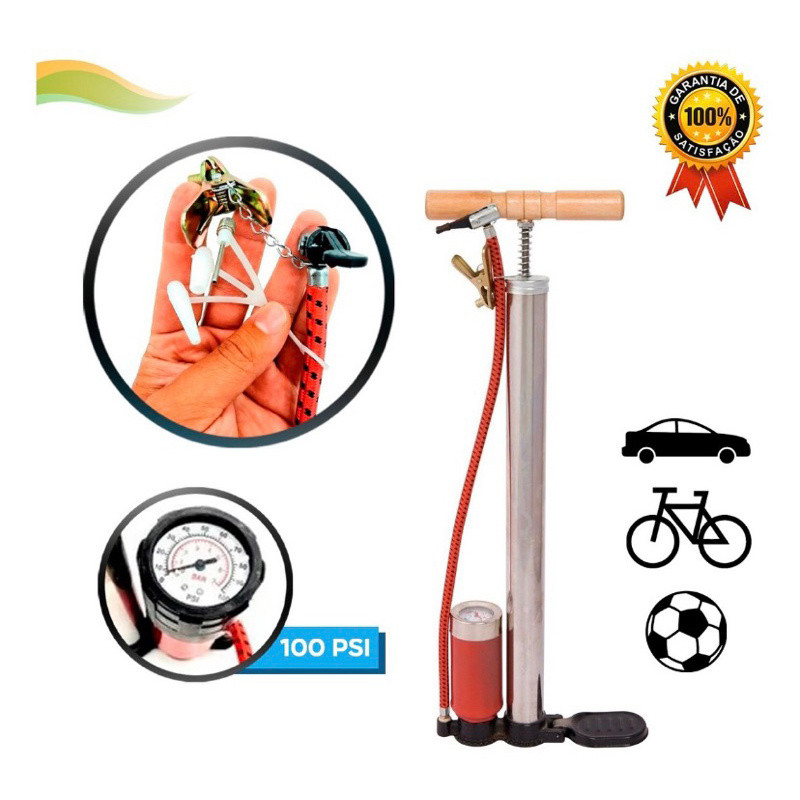 Bomba De Ar Manual Com Medidor 150 Psi Pneu Motocicleta Carro BT-AX103