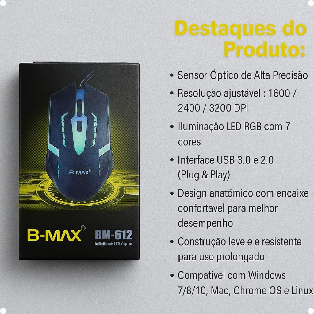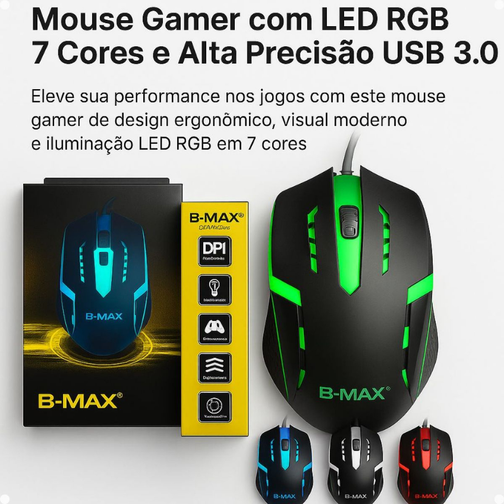 Mouse Gamer Para Jogos 3600 Dpi Com Fio Rgb Com Led 7 Cores notebook PC ergonômico dpi ajustável