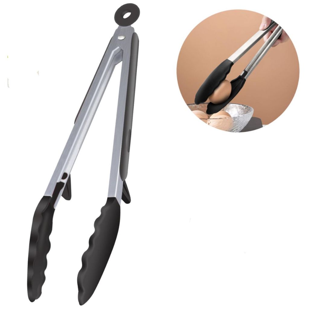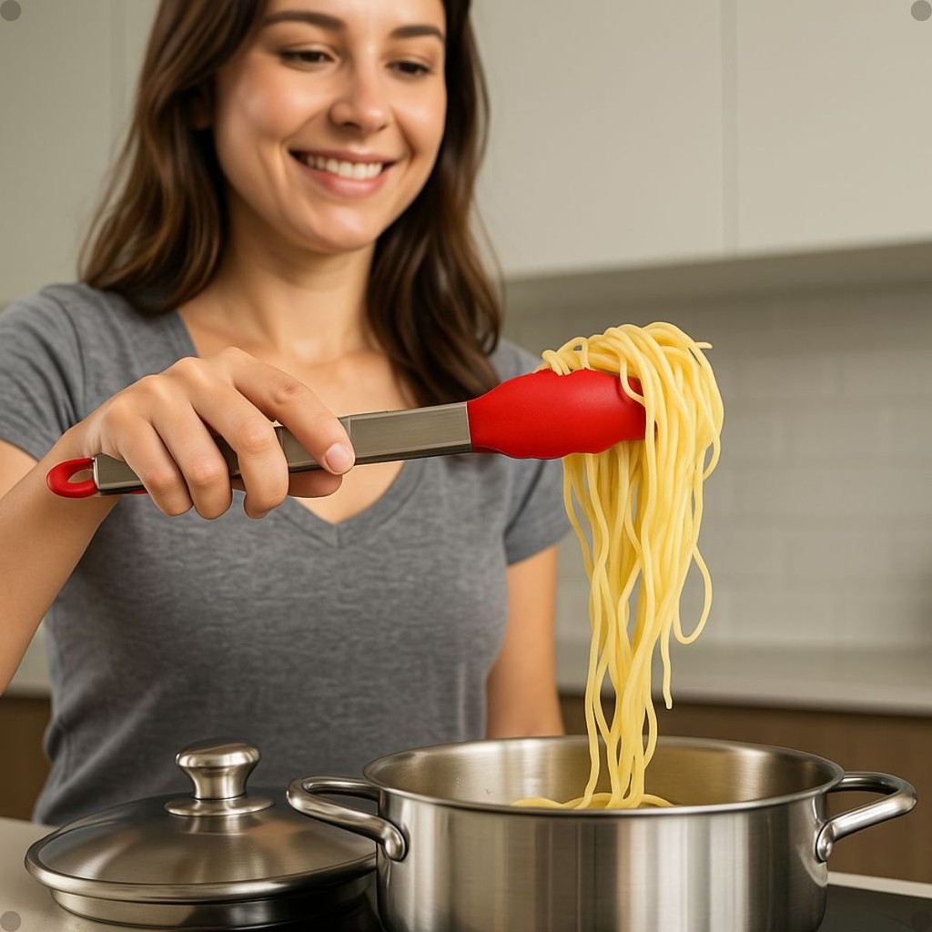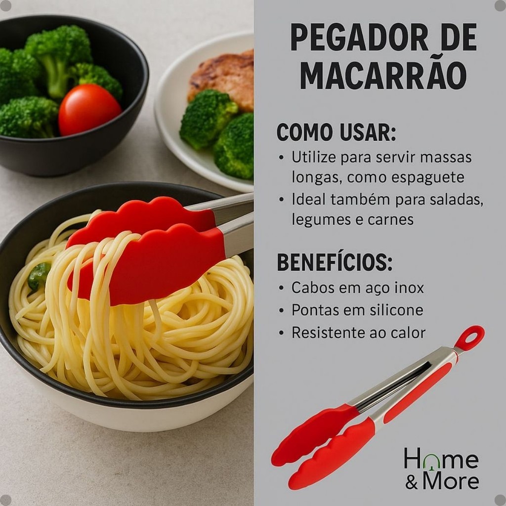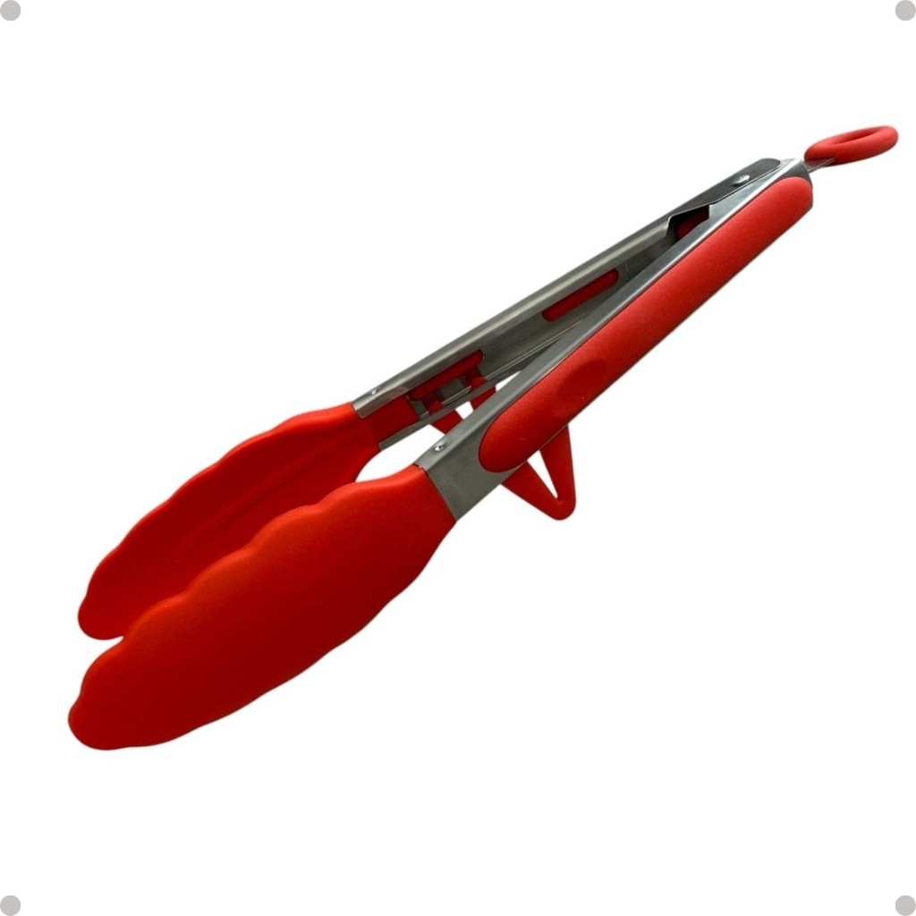Pegador Inox com Silicone Resistente ao Calor 34cm Vermelho ou Preto com Pézinho p Saladas Macarrão