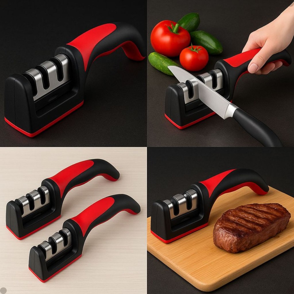 Amolador Afiador De Facas 3 Em 1 Profissional Inox portátil, manual, tesouras base antiderrapante