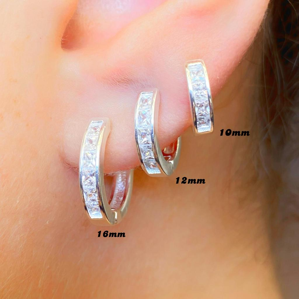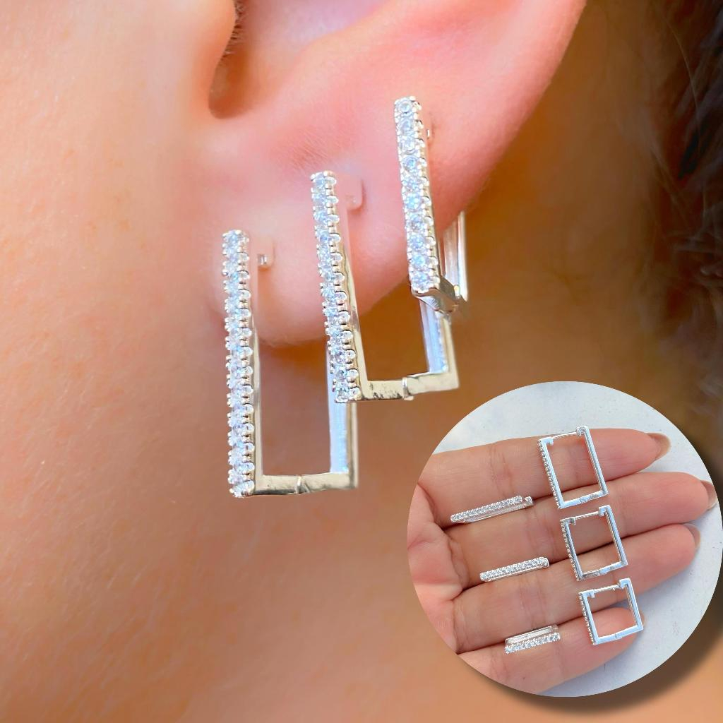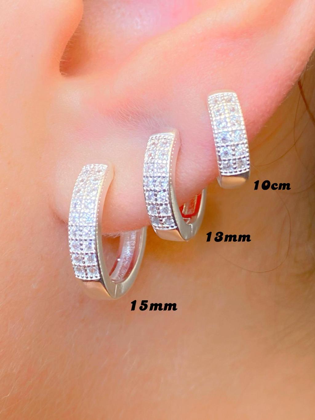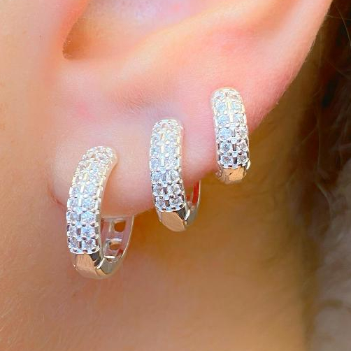 Trio de Argolas Prata Feminina kit Cravejadas em Pedras de Zircônias Ponto de Luz 16mm 15mm 14mm 13mm 12mm 11mm